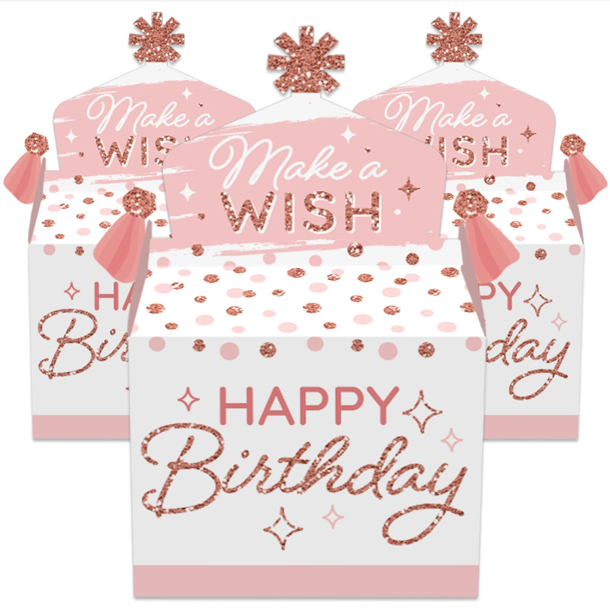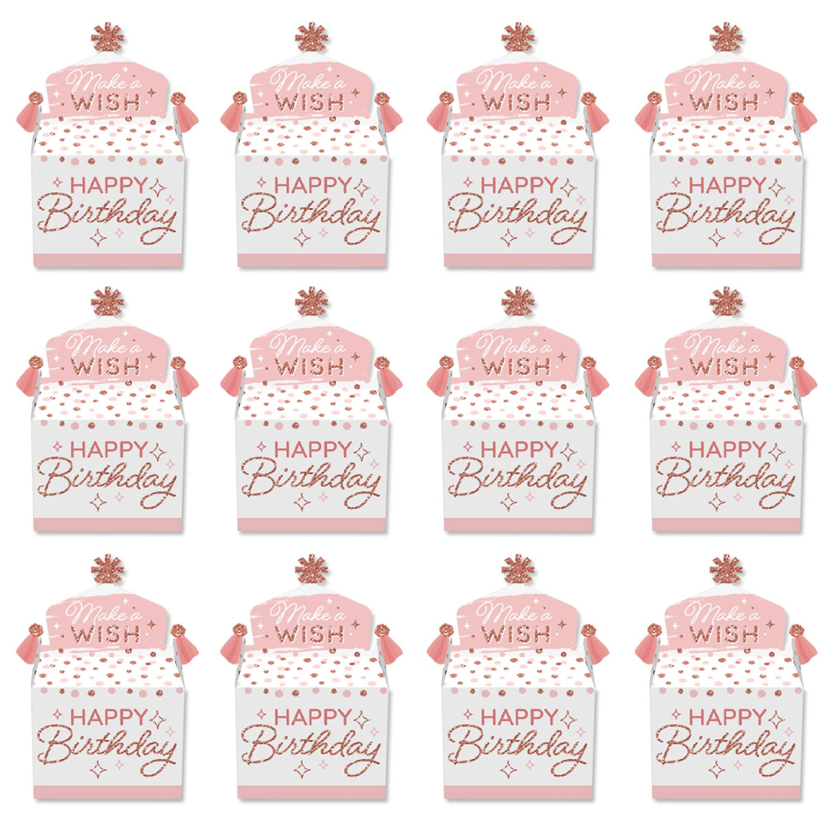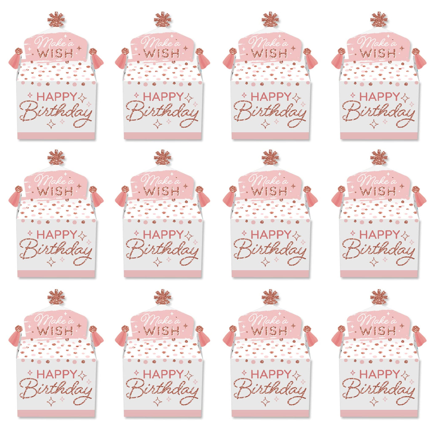 Big Dot Of Happiness Pink Rose Gold Birthday - Treat Box Party Favors - Happy Birthday Party Goodie Gable Boxes - Set Of 12