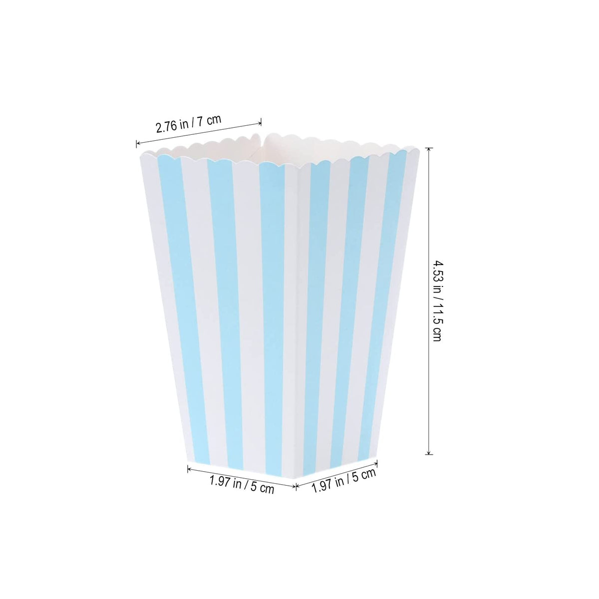 Q: What size are the popcorn boxes?A: Each popcorn box measures 12 x 7 x 0.2 cm (approximately 4.7 x 2.76 x 0.08 inches), making them ideal for serving snacks during parties or movie nights.