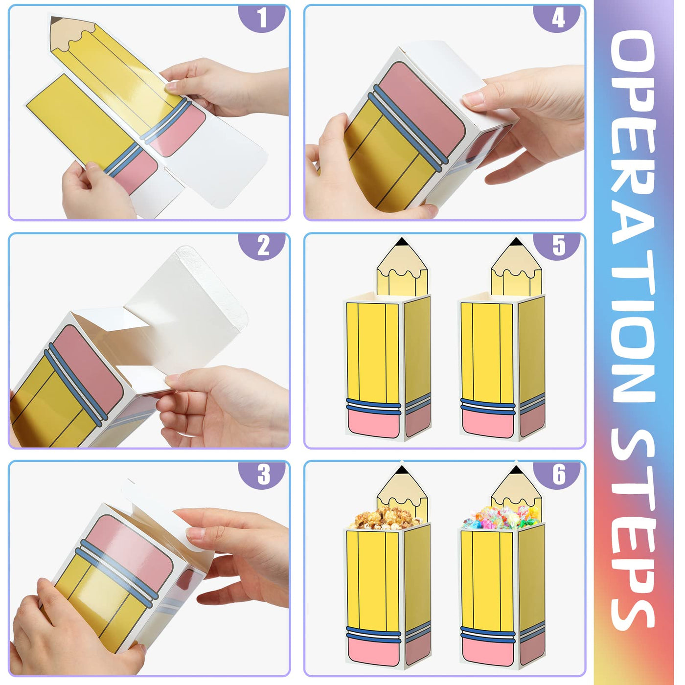 Harloon 24 Pcs Back To School Pencil Candy Boxes Popcorn Holders Teacher Gift Bags Party Favors Welcome Back To School Candy Tre
