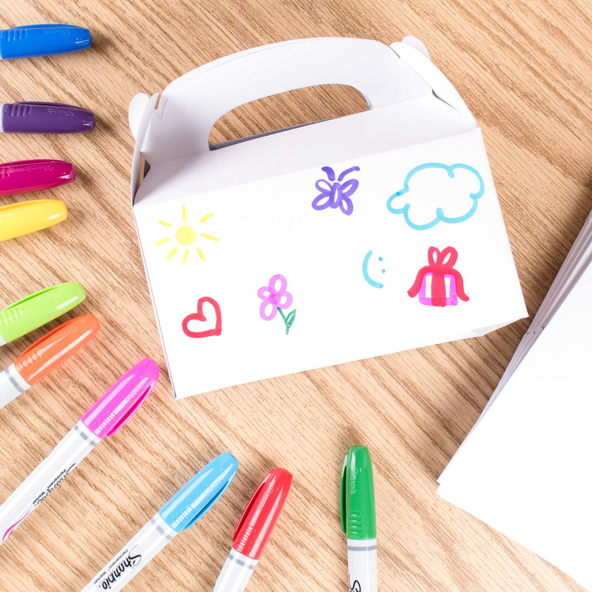 Super Z Outlet Blank White Color Treat Gift Paper Cardboard Boxes With Handles, Arts & Crafts Candy Goodie Bags, Picnic, Birthda