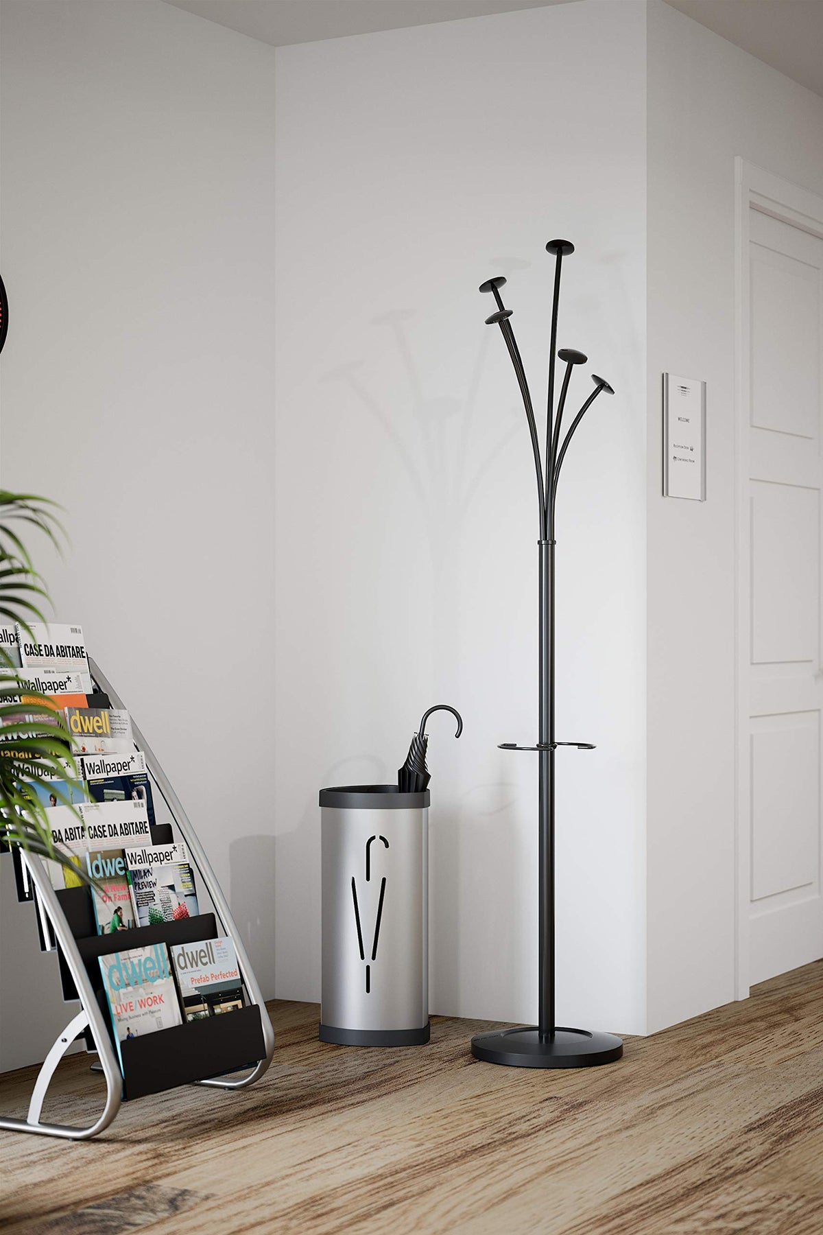 Abaddexpo8 Features: -Large Capacity: 2 X 400 Sheets Per Compartment. -Elliptical Structure And 4 Anti-Slip Pads. Design: -Freestanding. Commercial Use: -Yes. Product Type: -Magazine Rack/Stand. Finish: -Black; Silver. Hardware Included: -Yes. Number Of Pockets: -8. Dimensions: Overall Height - Top To Bottom: -36.61". Overall Width - Side To Side: -22.83". Overall Depth - Front To Back: -19.69". Overall Product Weight: -19.84 Lbs.