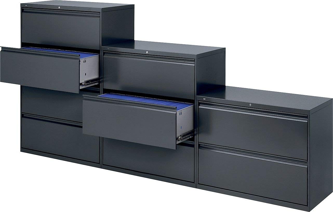 Three-Part, Telescoping, Steel Ball Bearing Suspension For Smooth Drawer Operation. Drawers Include Side-To-Side Hangrails For Letter Or Legal Size Filing, A Full-Width Radius-Style Pull And Magnetic Label Holder. Mechanical Interlock Allows Only One Drawer To Be Open At A Time. Four Adjustable Leveling Glides Help Compensate For Uneven Flooring. Hon "One Key" Interchangeable Core Removable Locks.