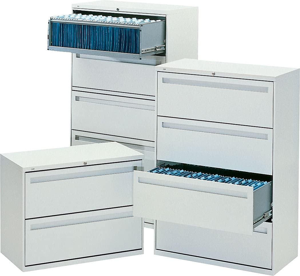 Three-Part Telescopic Slide Suspension. Locks Secure Drawer Sides. Mechanical Interlock Allows Only One Drawer To Be Open At A Time To Prevent Tipping. Horizontal Slides Are Adjustable To Accommodate Uneven Floors. Hon "One-Key" Interchangeable Core Removable Locks.