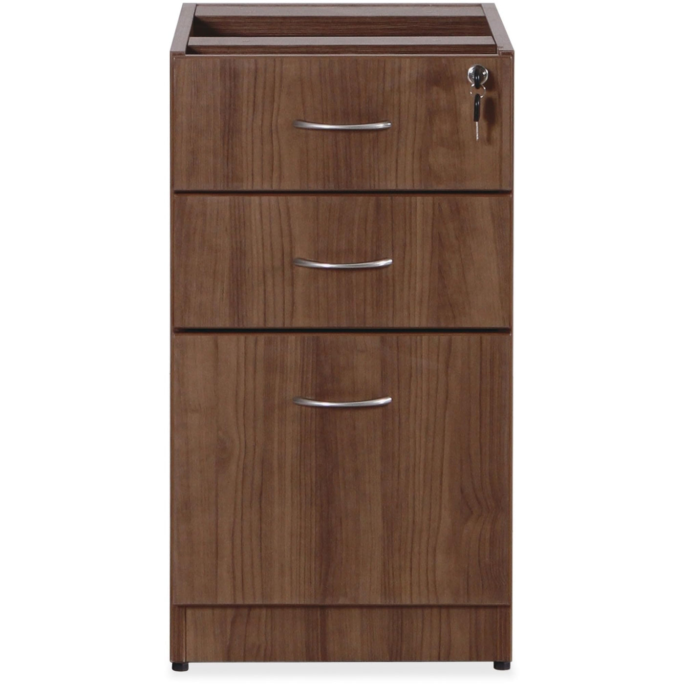 Hanging Pedestal Is Part Of Lorell Essentials Series Laminate Furniture With High-Quality, Walnut Laminate Construction. Pedestal Offers A Box/Box/File Design To Store Office Supplies And Important Files. The File Drawer Includes Hangrails And Holds Letter-Size And Legal-Size Hanging Files. Design Also Includes 96Mm Metal Drawer Pulls With A Silver Brush Finish And 3Mm Pvc Edges. Pedestal Attaches To The Underside Of The Top Of An Essentials Series Desk, Credenza Or Return With The Included Fasteners And Extends To The Floor.