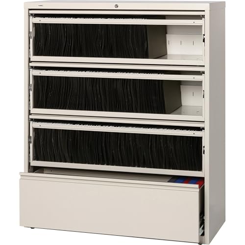 Receding Lateral File With Roll-Out Shelves Offers A Total Of Four Drawers With Heavy-Duty, Three-Piece, Ball-Bearing Slide Suspension For Smooth Drawer Movement. All Drawers Above The Bottom One Have Receding Fronts And Roll-Out Shelves For Easy Access To Your Files. Bottom Drawer Has A Fixed Front. Included Hangrails Accommodate Side-To-Side Filing Of Letter, Legal Or A4-Size Folders. Dual Lock Bars Secure Both Ends Of Drawers. Interlock System Prohibits The Extension Of More Than One Drawer At A Time. 42" Wide Lateral File Also Features A Core-Removable Lock; Full-Width Designer Drawer Pulls; Four Adjustable Leveling Guides For Stabilization And Reinforced Double-Base Construction. Lateral File Does Not Include Dividers. File Meets/Exceeds Applicable Ansi/Bifma Standards.