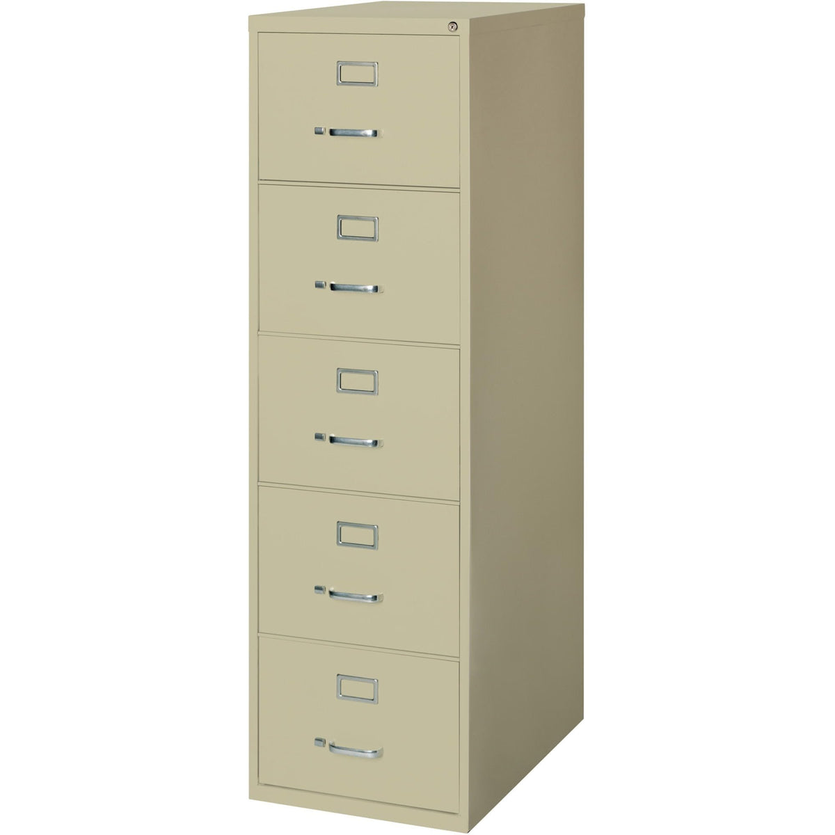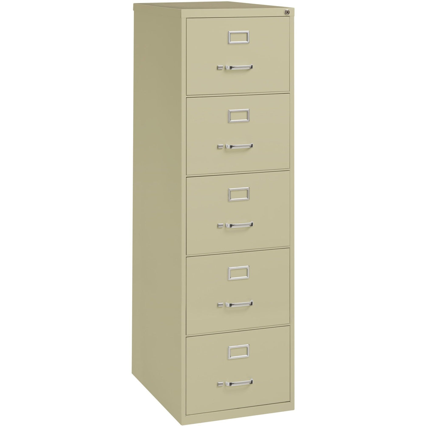Commercial-Grade Vertical File Features Five High-Sided Drawers That Accommodate Legal-Size, Hanging File Folders Without Additional Accessories. Slide Suspension Allows Maximum Drawer Extension. Steel Ball Bearings Provide Smooth, Quiet Drawer Performance. Even Fully Loaded, These Drawers Open With Ease. Adjustable Wire Followers Keep Files Upright. 26-1/2" Deep Vertical File Also Features A Core-Removable Lock For Security, Aluminum Label Holders For Easy Referencing, Convenient Pull Handles And Heavy-Gauge Steel Construction With Recycled Content. Vertical File Meets Or Exceeds Ansi/Bifma Industry Standards.