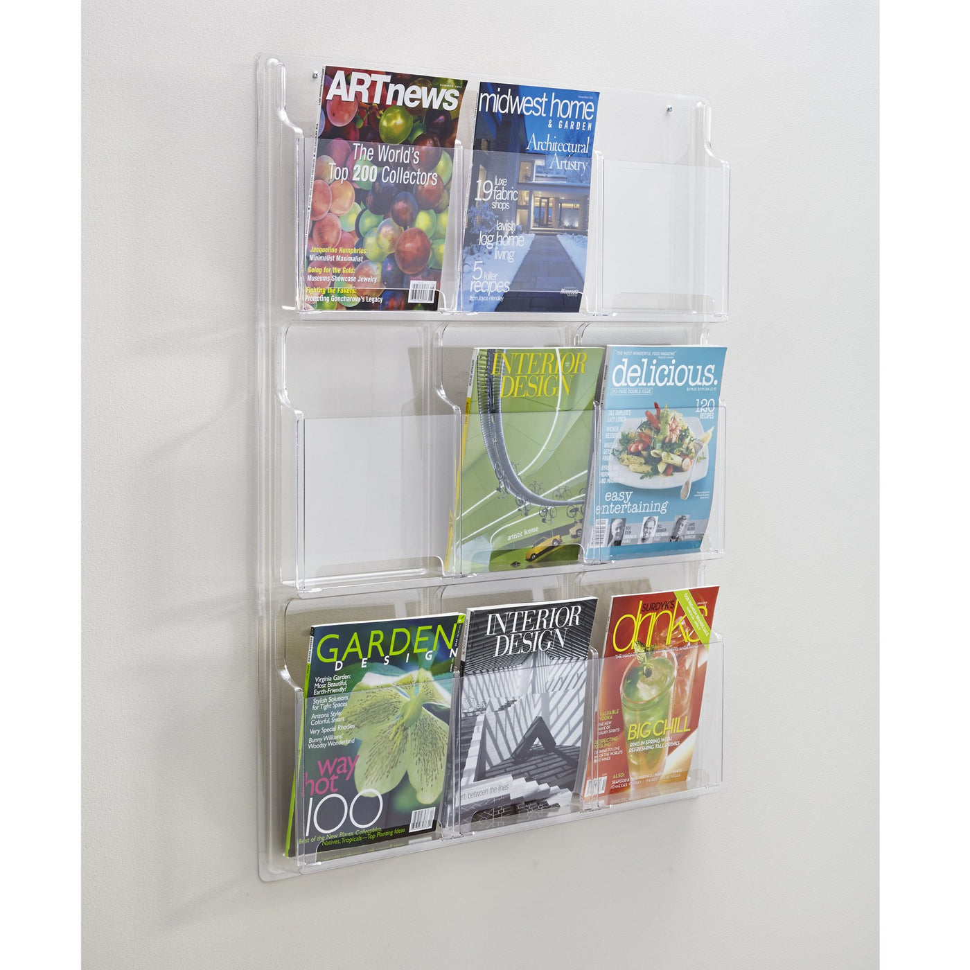 Safco Reveal 9 Magazine Display Effectively Holds Journals, Pamphlets, Magazines, And Other Materials In Offices, Waiting Rooms, And Education Centers. See-Through Display Mounts Easily On Wall (Hardware Included) And Blends In With Any Office Décor. One-Piece Thermoformed Plastic Resin Construction Includes Nine 9.25"W X 1.75"D X 11.25"H Pockets That Each Hold 1.75" Of Printed Material With No Sharp Edges Or Corners. Ideal For Use In Waiting Rooms, Break Rooms, Offices, Lobbies, Community Centers, And Classrooms.