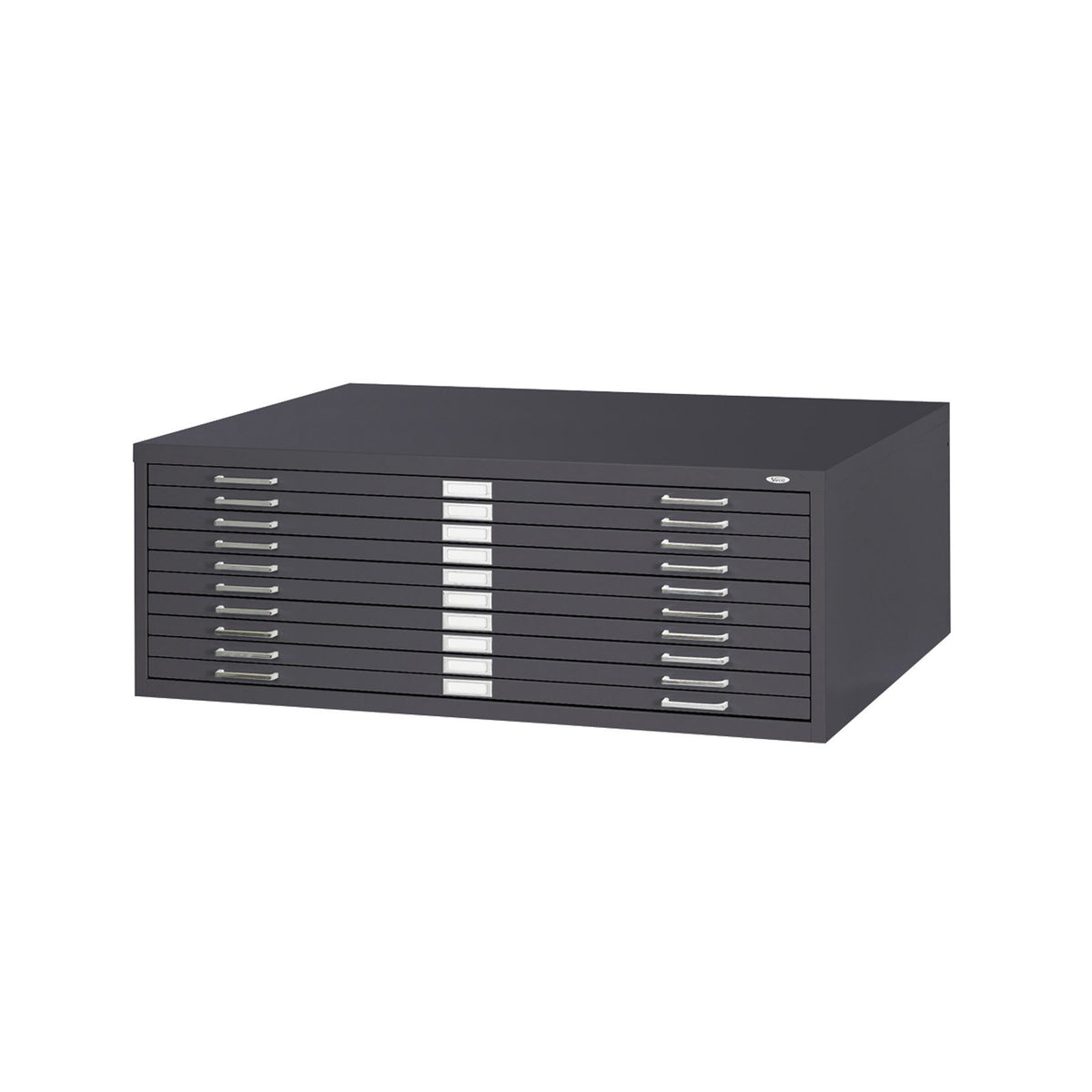 Safco Products 4986Bl 10-Drawer Flat File For 42" Wide X 30" Long Documents, With Case-Hardened Rollers & Optional Space-Saving Base - Black