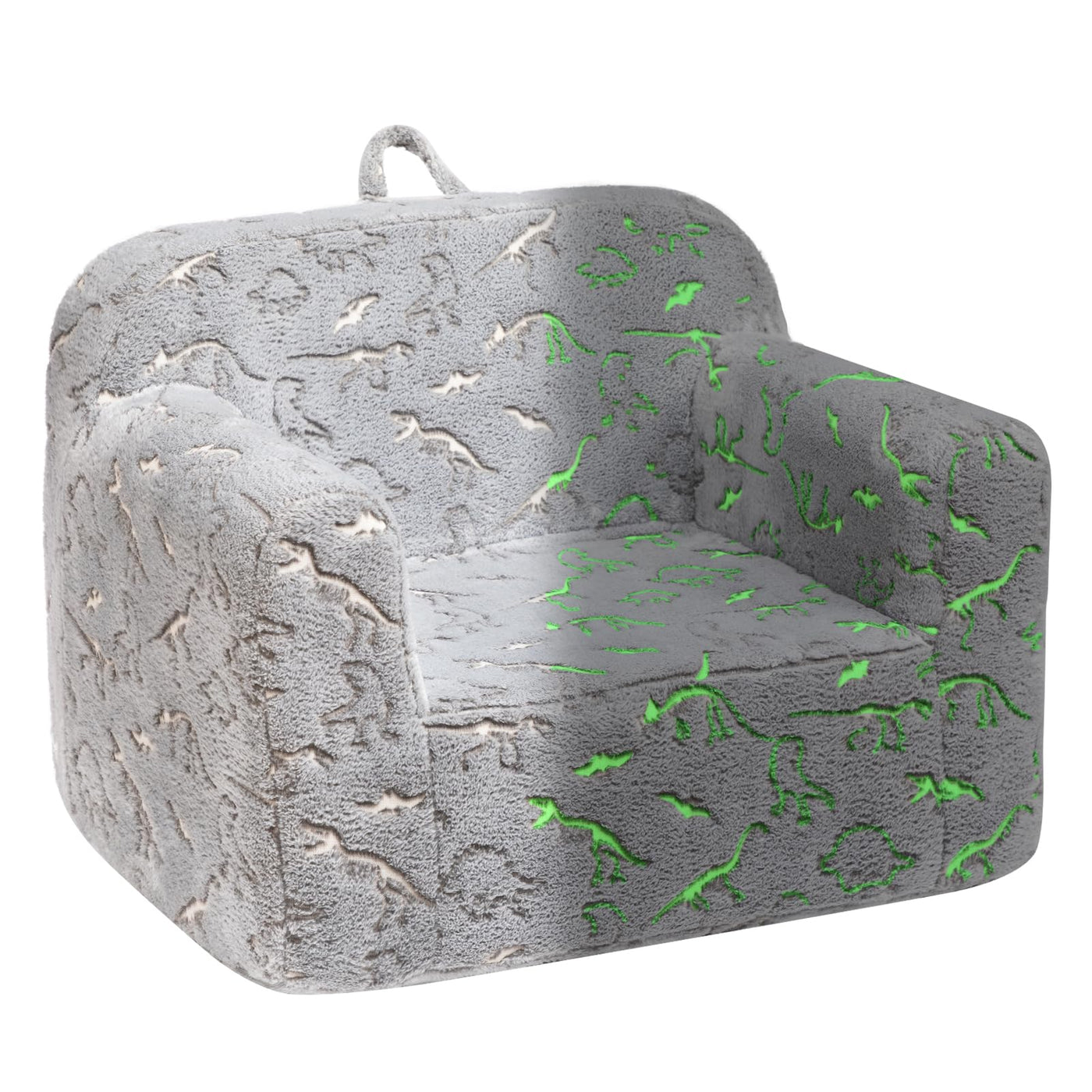 Q: How does the glow-in-the-dark feature work on this chair?A: The chair can glow in the dark after being exposed to bright light for just 15-30 minutes, allowing kids to enjoy a fun animal kingdom experience during the night.