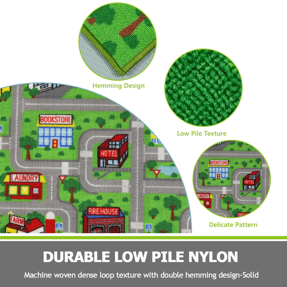 Capslpad Green Car Road Kid Rug Carpet Playmat For Playoom Traffic Road Kids Play Mat For Toddler Non Slip Washable City Map Rac