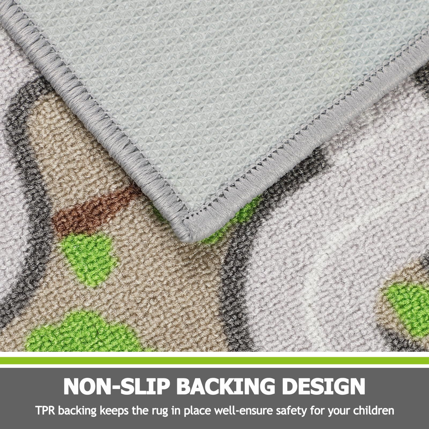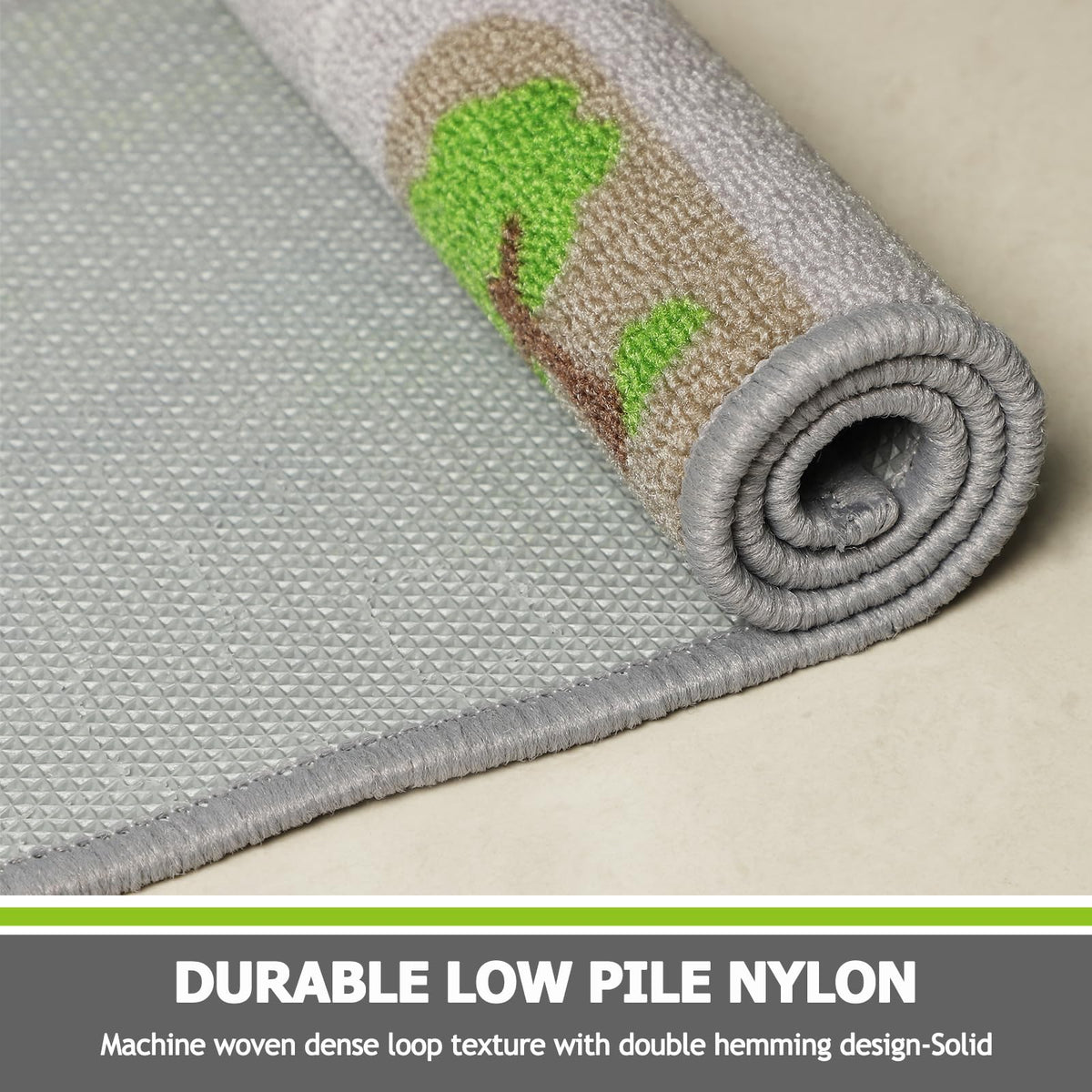 Q: Is the playmat safe for kids?A: Yes, the rug is made from 100% high-quality nylon materials, featuring a non-slip TPR backing to ensure it stays in place and provides a safe play environment for your children.