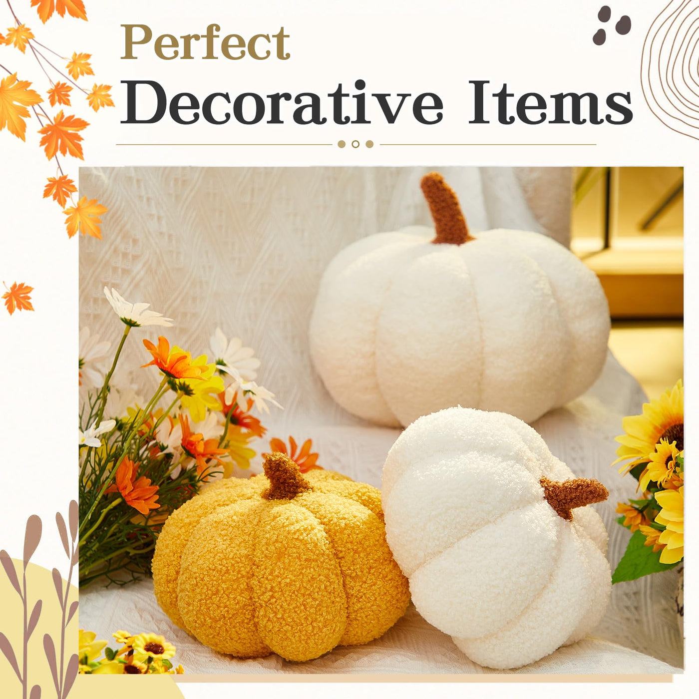 Q: What materials are used in the pumpkin decorative pillows?A: The decorative pumpkin pillows are made of filled PP cotton, which makes them soft, comfortable, and lightweight. They are designed to be breathable and reliable, ensuring they maintain their shape and color over time.