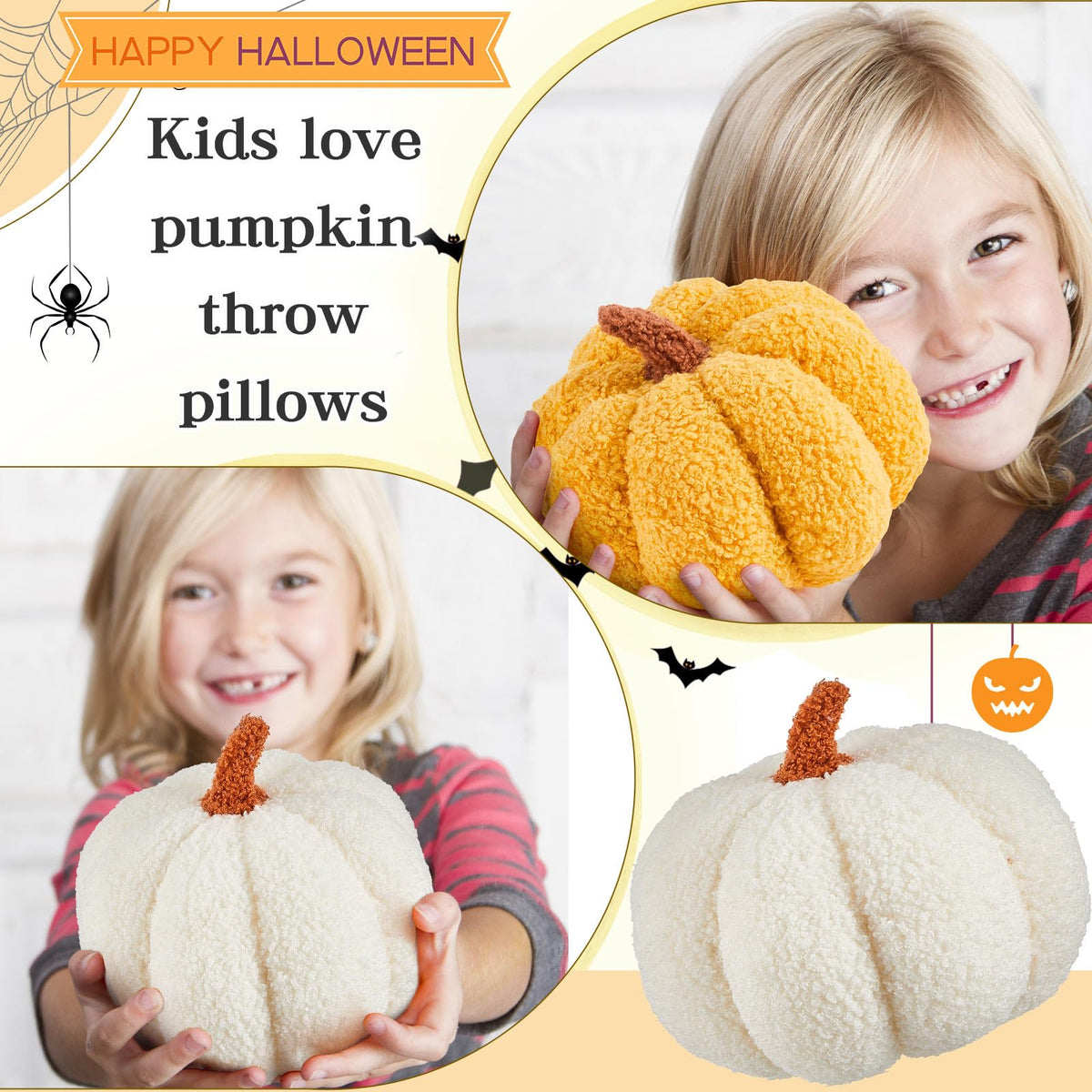 Features: Gift Supplies: Our Small Toy Pumpkins Can Be Applied As A Nice Gift, And You Can Send Them To Your Friends, Classmates, Parents, Colleagues And So On, Which Can Get Their Love. Cheer Up Your Halloween: This Orange Decorative Pillow Adopts Pumpkin'S Shape, Modern And Conspicuous, It Is A Nice Complement To Your House And Party, Giving You A Cherished Moment. Specifications: Material: Filled Pp Cotton Color: As Shown In The Picture Size: White: About 28 X 28 X 17 Cm/ 11 X 11 X 7 Inches White And Yellow: About 18 X 18 X 10 Cm/ 7 X 7 X 3.5 Inches Package Includes: 3 X Cute Throw Pillows Notes: Manual Measurement, Please Allow Slight Errors On Size. The Color May Exist A Slight Difference Due To Different Screen Displays.