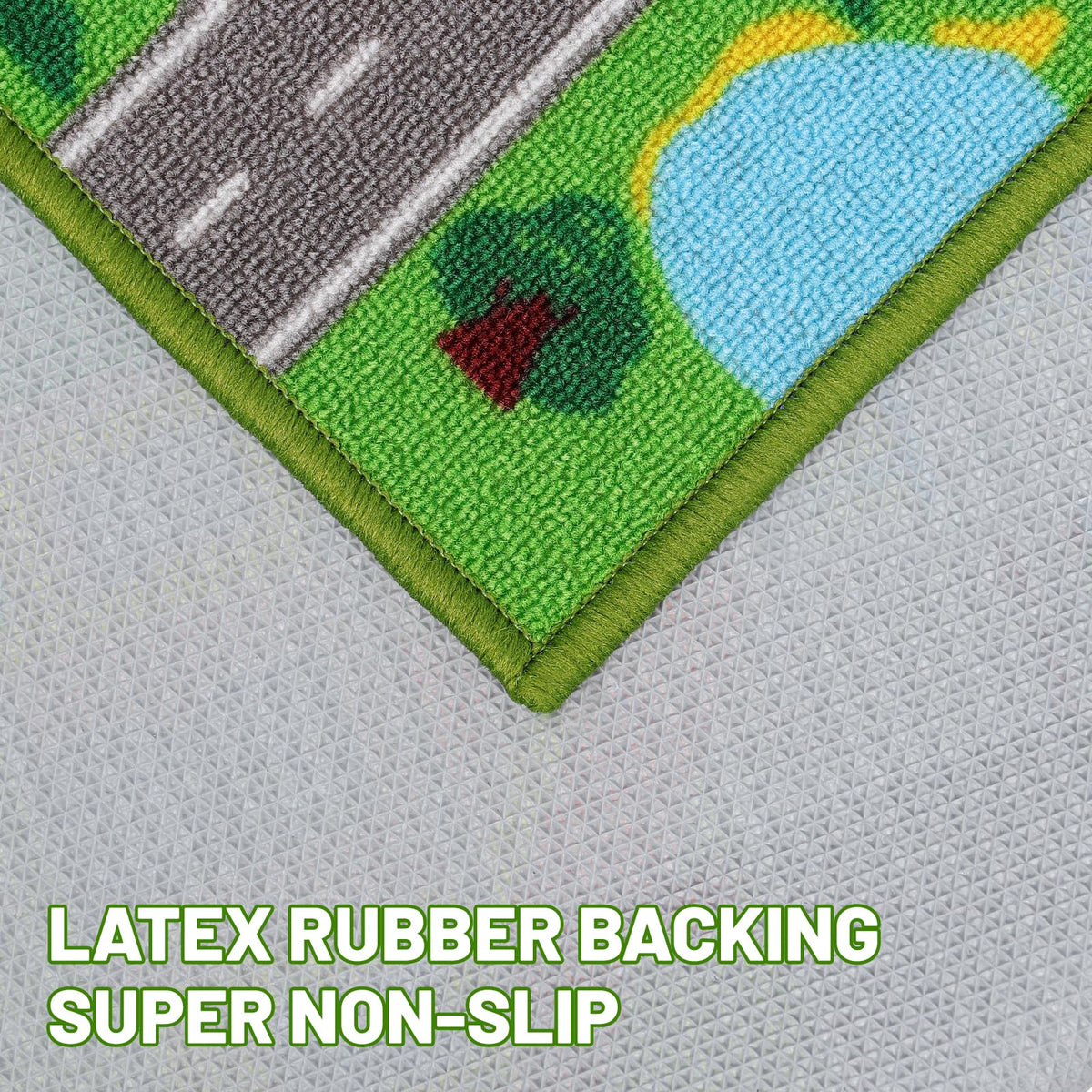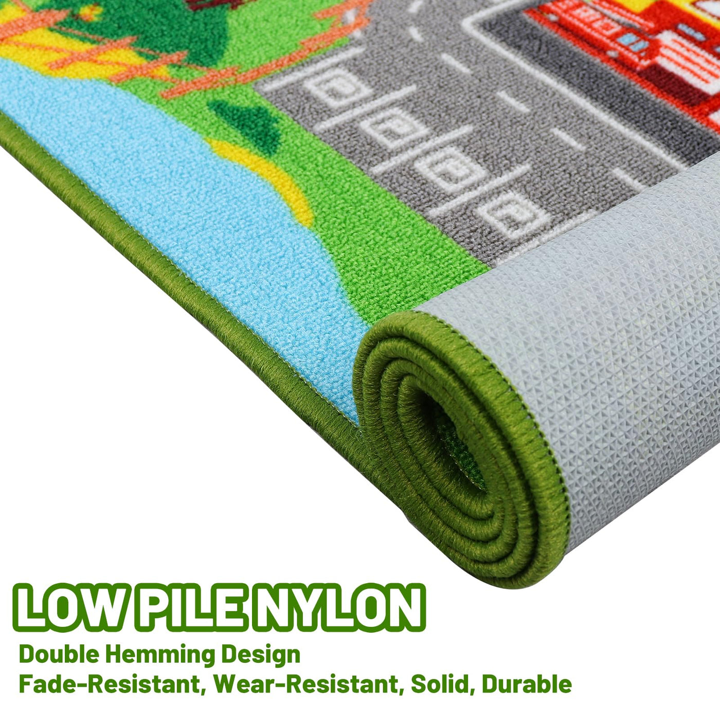Q: Is the rug safe for young children?A: Yes, the rug is made from 100% nylon with non-toxic, non-BPA, and lead-free materials, ensuring it is safe for children to play on.
