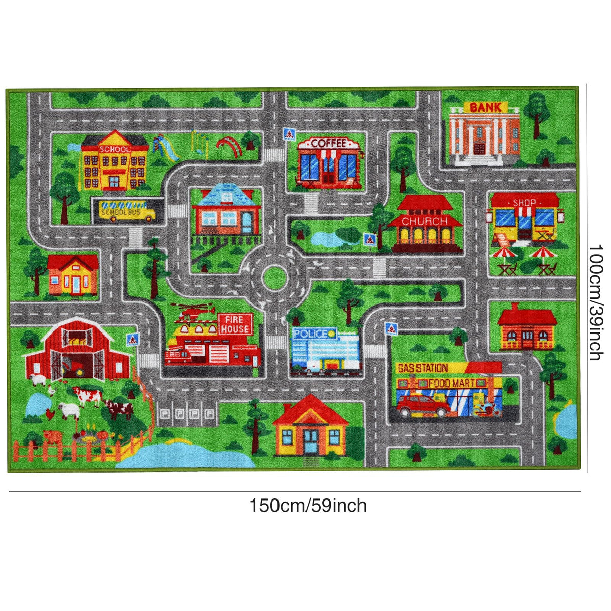 Kids Carpet Playmat Rug, Fun City Traffic Game Carpetlearn &Amp; Have Fun &Amp; Educational Play Mat Rug Great For Children Bedroom Playroom Living Room.Car Rug Features Different Buildings Such As Hospitals, Gas Stations, Fire Stations, Schools, Coffee Shops, And More, Allowing Your Child To ''Drive'' To Different Places On The Rug.Machine Washable Car Play Mat, Machine Washable Kids' Carpet Playmat Or You Can Clean It Easily With A Vacuum.Non-Slip Design Kids Play Mat, Made Of High-Quality Polypropylene Material With A Non-Slip Latex Bottom For Maximum Safety, Very Soft Children'S Educational Playmat Rug