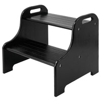 Vaefae Bamboo 2 Step Stool With Non-Slip Step Treads And 2 Cutout Handles (Black)