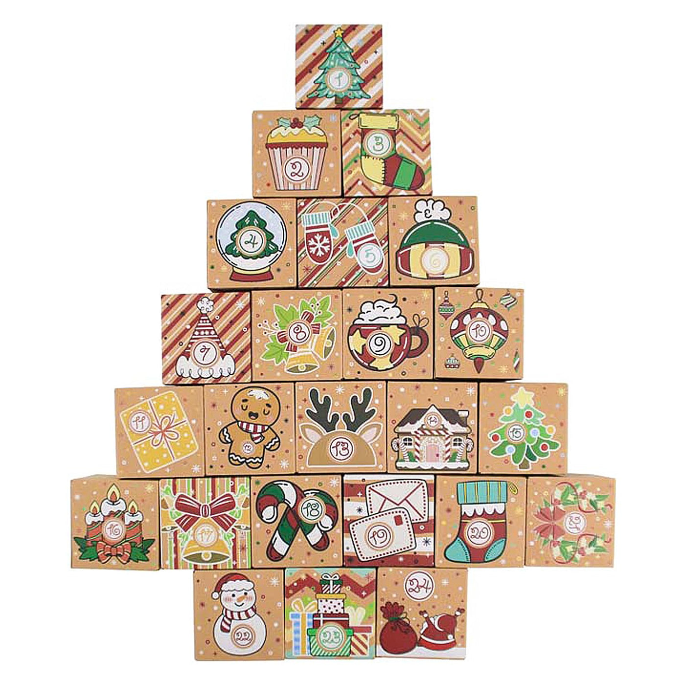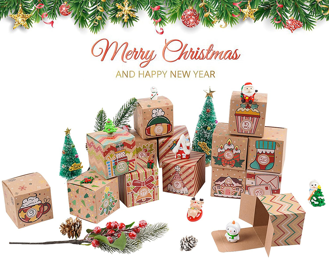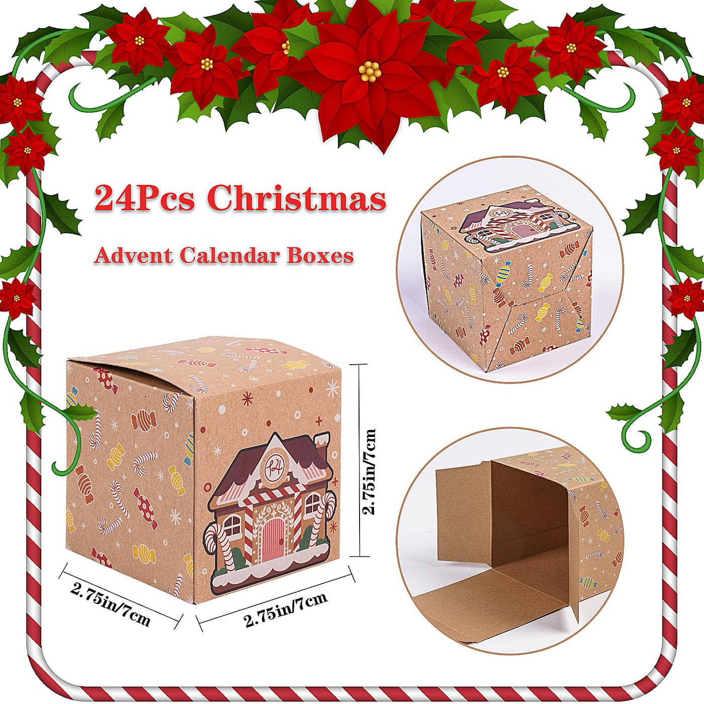 Design:24Pcs Christmas Pattern Advent Calendar Boxs. Perfect Size: The Size Of Box Is 7.5 X 7.5X 7.5 Cm, Perfect For Gifts Such As Chocolate, Candy, Coins, Trinkets And Dolls.&Nbsp; Simple And Easy Way Of Make Different Surprises Every Day For Your Child Sturdy Advent Calendar Boxes: Made Of Sturdy Kraft Paper, Colorful And Nice To Come Flat Pack Easy To Assemble, Just Attach Stickers To Form A Christmas Countdown Calendar.