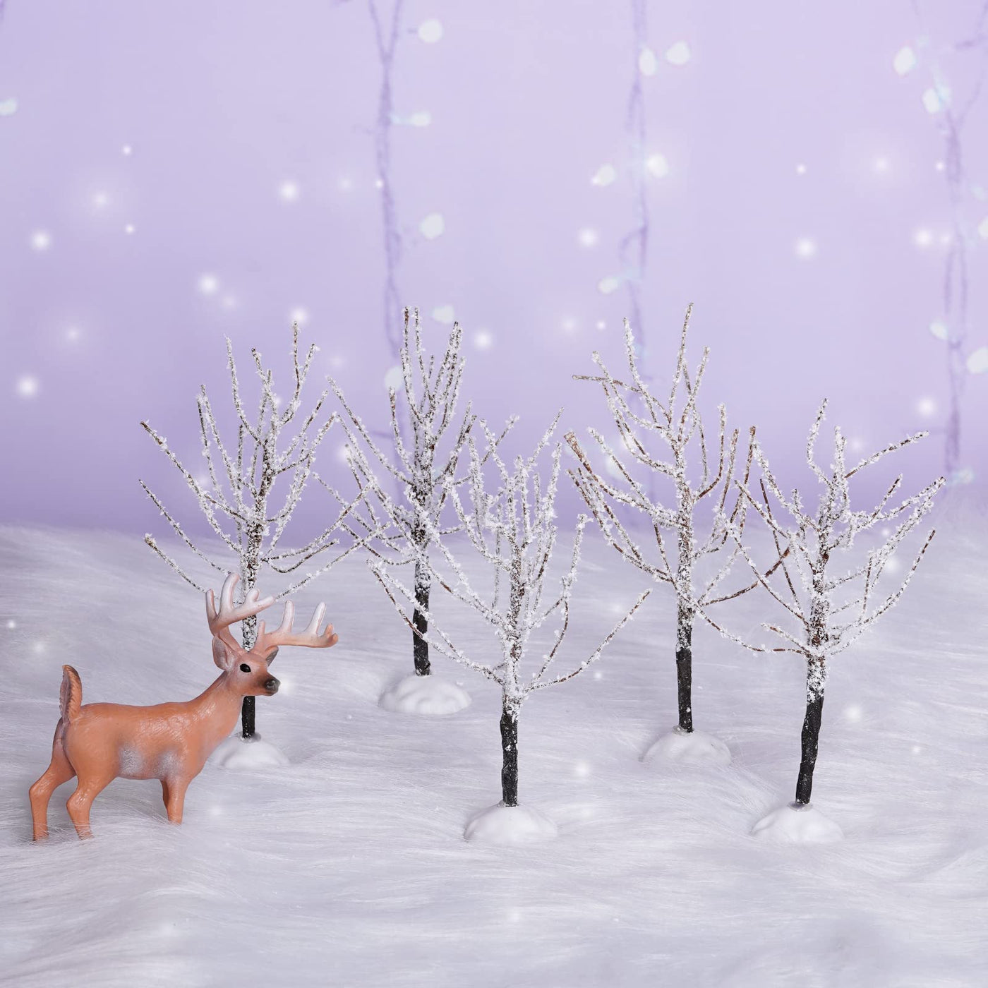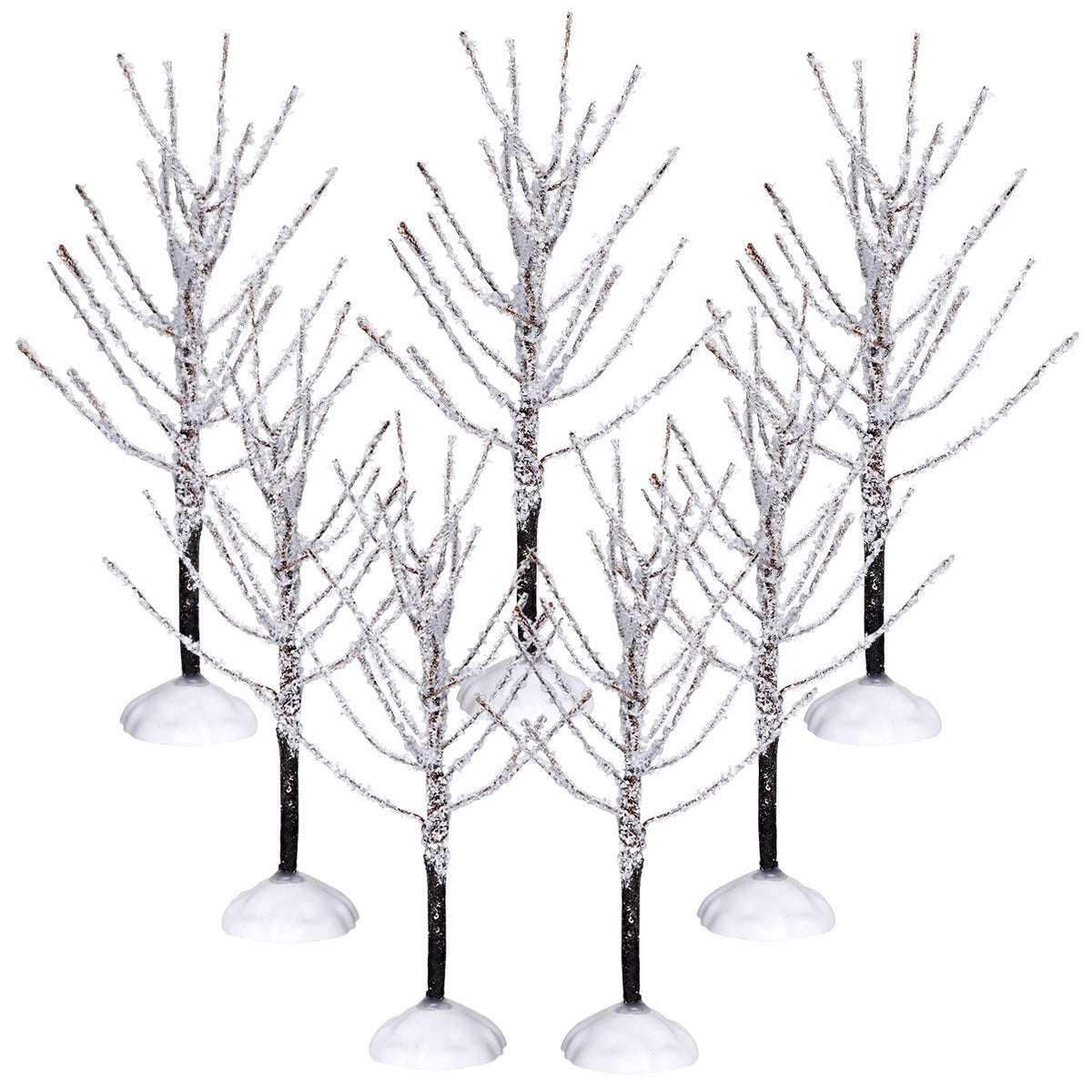 Q: Are these trees suitable for miniature landscapes and table displays?A: Yes, these snow-covered village trees are perfect for miniature landscapes and table displays. Their realistic appearance adds a festive touch to holiday decorations in homes, classrooms, and more.