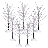 Q: What sizes do the snow-covered trees come in?A: This set contains a total of 7 snow-covered trees in two sizes: 4 pieces that are 13 cm (5.2 inches) tall and 3 pieces that are 15 cm (6.0 inches) tall.