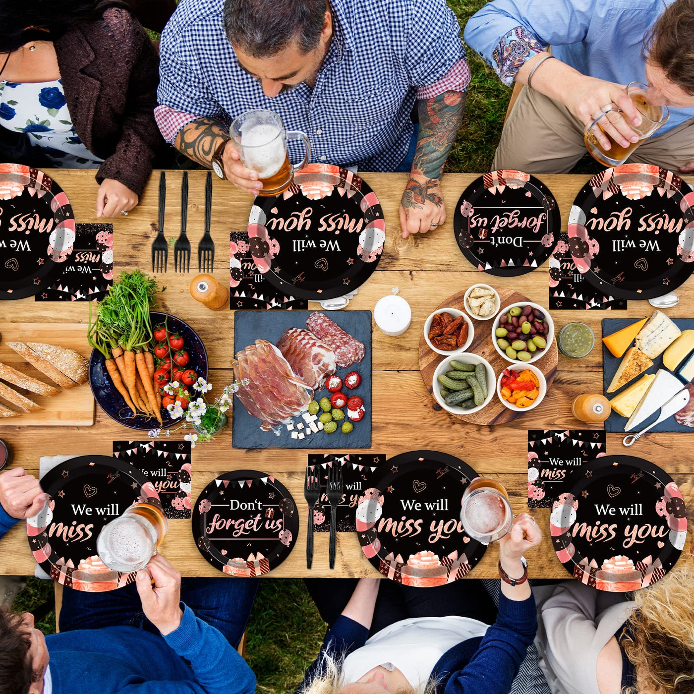 96Pcs We Will Miss You Party Paper Plate And Napkin Farewell Party Decoration Going Away Party Disposable Tableware Set Black An