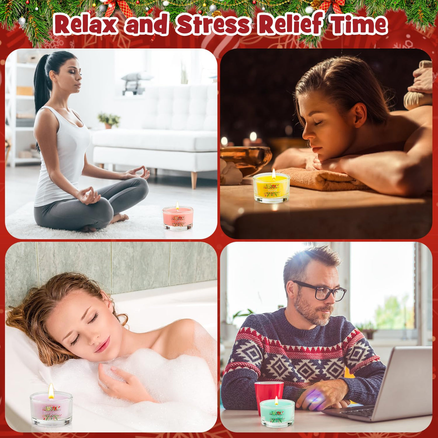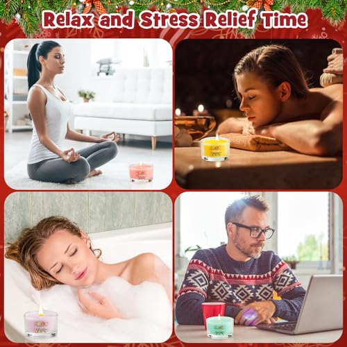 Q: What makes these candles suitable as Christmas gifts?A: The beautifully packaged set, adorned with intricate red and gold designs and snowflake patterns, makes these candles perfect for Christmas gifts, stocking stuffers, or thoughtful presents for coworkers and friends.