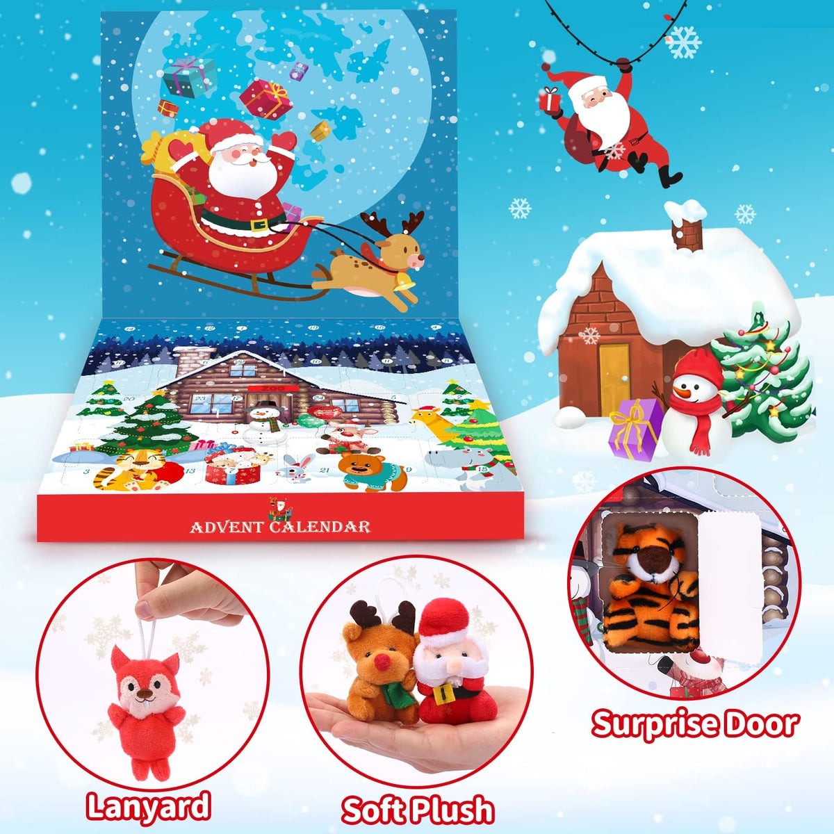 Are You Ready For The Christmas Eve And Still Looking For Adorable Advent Calendar Gift For Kids? Our 2024 Advent Calendar Will Be A Great Choice! 24 Stuffed Animals, Each Day Discover A New Surprise Hidden Behind The Door. Fill Your Children With Expectations This December And Enjoy This Memorable Holiday Season Counting Down To Christmas Is Always An Exciting Time. It'S Time To Prepare A Lovely Countdown Calendar For This Important Meaning, Absolutely Fun And Mysterious. 24 Animal Dolls: Lion, Tiger, Hippo, Leopard, Dog, Panda, Rabbit, Bear, Elephant, Duck, Frog, Pig, Sheep, Donkey, Monkey, Mouse, Cow, Squirrel, Penguin, Owl, Santa Deer, Santa Claus, Snowman, Etc. From The 1St To The 24Th, There Is A New Surprise Toy Every Day. Light And Mini, Soft Touch, 100% Safe For Children. Play With Your Friends, Count Down Christmas Together, And Share The Joy! The Doll With Lanyard Design Is Very Suitable For Christmas Decorations, Making A Unique Christmas Tree With Friends And Family. It Can Also Be Used As Stocking Stuffers, Keychain, Backpack Decor, Etc, To Explore Unlimited Fun.