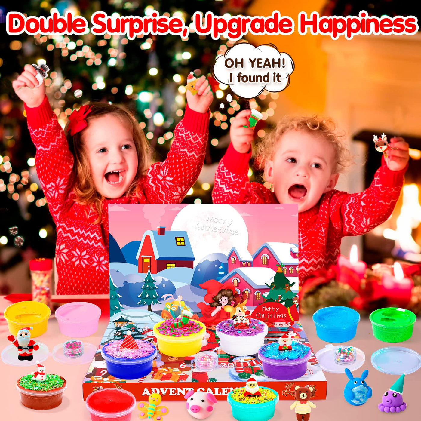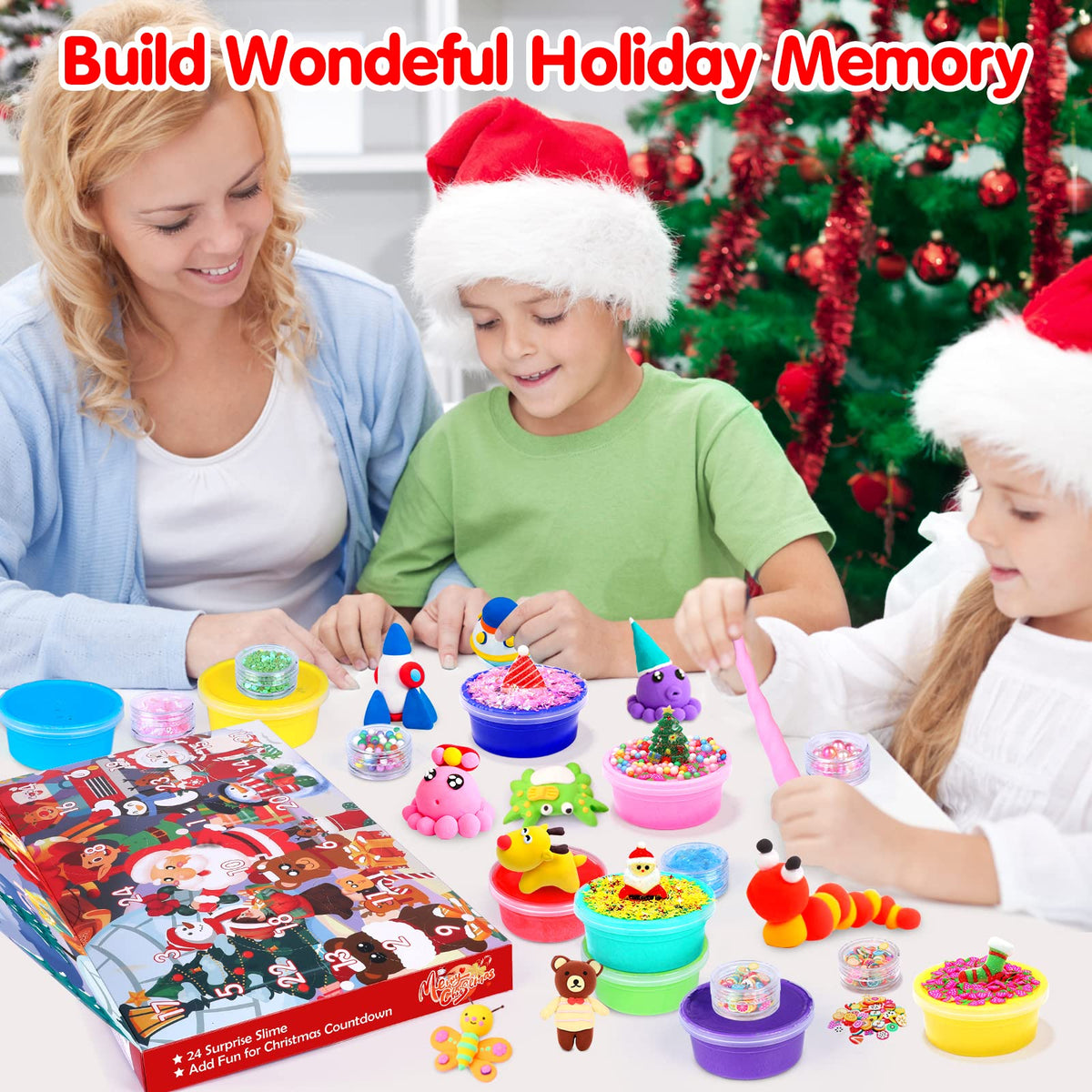Advent Calendar 2024 For Kids With Diy Slime, 24 Days Surprises Christmas Countdown Calendar Slime Fluffy Supplies Xmas Gift For