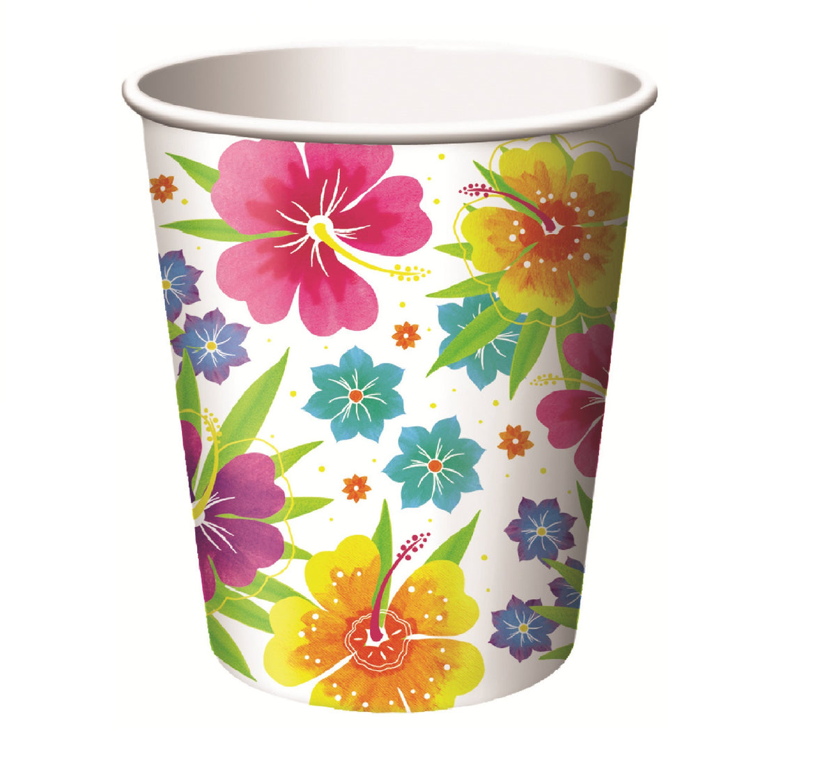 Q: What items are included in the Hawaiian Summer Party Pack?A: The Hawaiian Summer Party Pack includes 50 Hibiscus Flower Assorted Dinner Plates (8.75 inches), 50 Hibiscus Flower Cups (9oz), and 60 Large Napkins (20 Green, 20 Yellow, and 20 Pink). This comprehensive set is designed for parties with up to 50 guests.