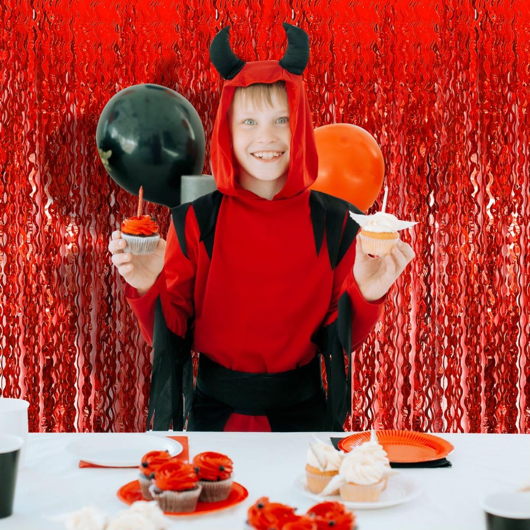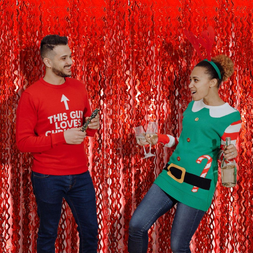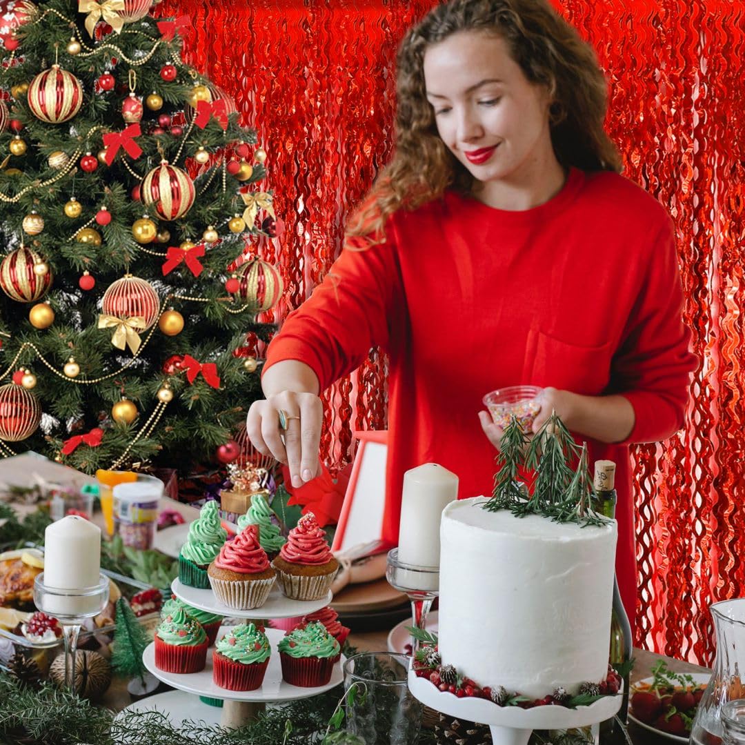 Backdrop For Party Decorations, Wave Foil Fringe Curtain Tinsel Photo Backdrop Red Tinsel Curtain Party Backdrop Streamers For B