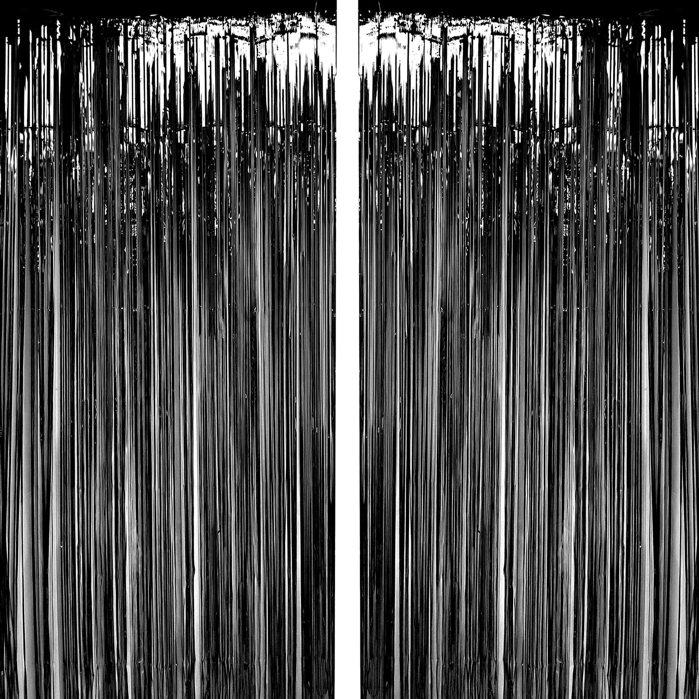 Black Foil Fringe Curtains Metallic Tinsel Foil Fringe Curtains Happy Birthday Baby Shower Retirement Bachelorette Halloween New