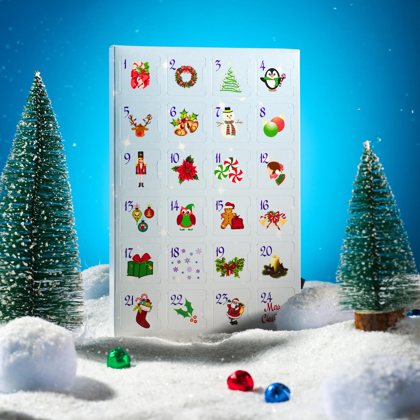 Q: What is included in the Chocolate Advent Calendar?A: The Chocolate Advent Calendar includes 24 pieces of delicious milk chocolate, each hidden in a sealed compartment for daily enjoyment throughout December leading up to Christmas.