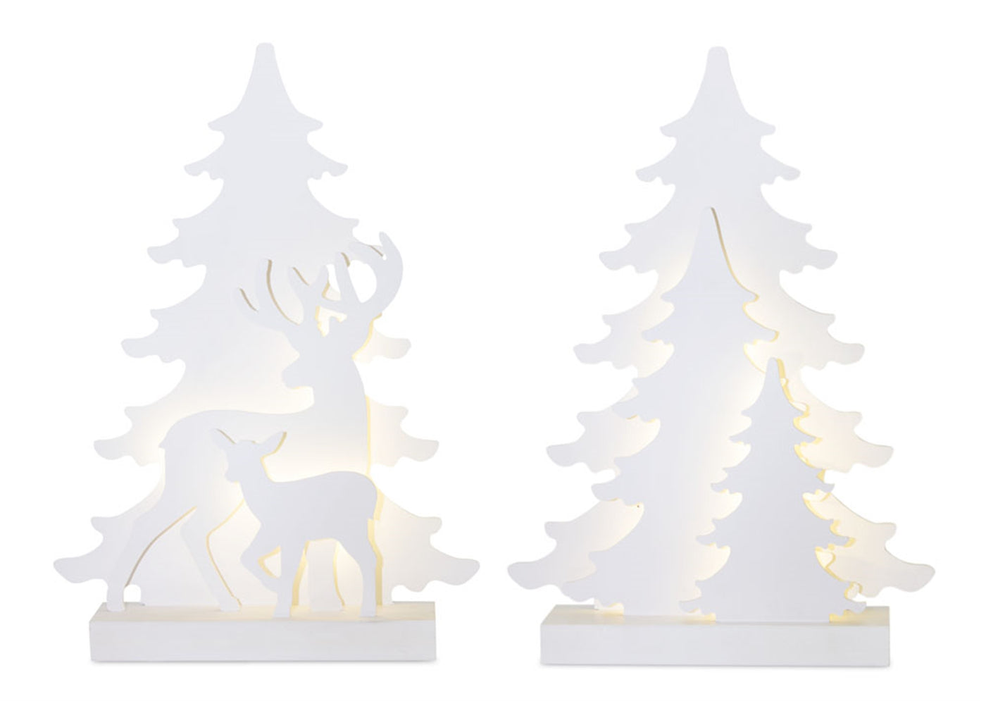 Choose This Elegant Tree And Deer Decoration With Eye-Catching Charm That Magnifies The Overall Festive Atmosphere. It Comes Pre-Lit And Features A Beautiful Snowy Hue. Since It Has A Timer Function, You Don'T Have To Worry About Turning It Off After Each Use. Product Features: Christmas Table Decoration With White Illuminated Tree. Ideal For Seasonal Decoration. Requires 3 Aa Batteries (Not Included). Perfect Accent For Any Room In Your Home. It Is A Versatile Decoration Accessory. Recommended For Indoor Decorative Use Only. Dimensions: 16'H X 11.5'W X 3'D. Materials: Polyestermdf. Notes: Set Includes 2 Of The Items Shown