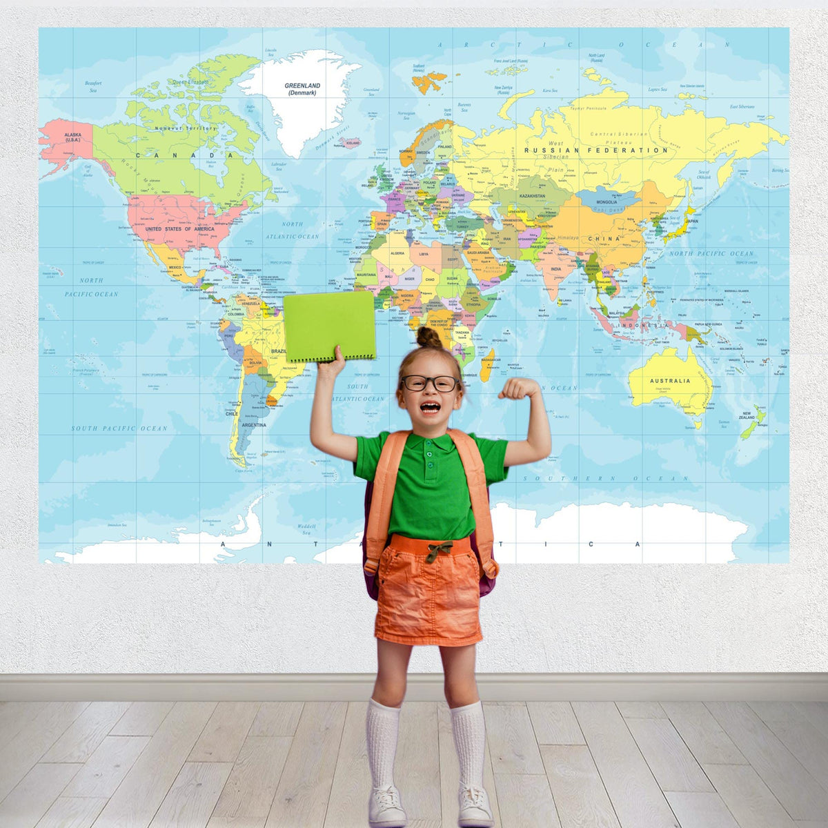 Q: What are the dimensions of the CORFOTO World Map Backdrop?A: The CORFOTO World Map Backdrop measures 5x3 feet, making it an ideal size for various events such as baby showers, birthday parties, and photography sessions.