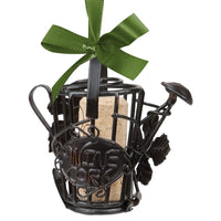 Q: What features make the Cork Cage Ornament unique?A: The Cork Cage Ornament features a cleverly crafted design with whimsical accents and a satin bow, adding a charming touch to your holiday decor or gift.