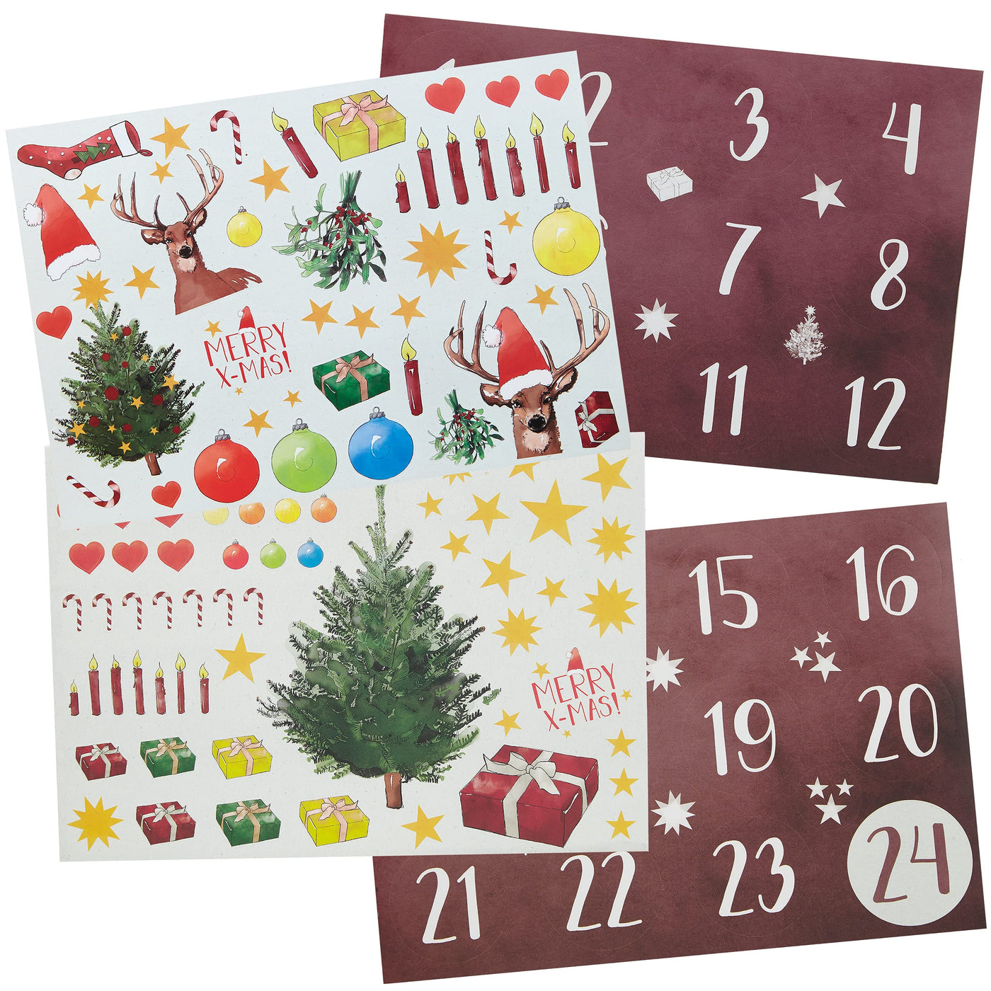 Q: What materials are included in the DIY Advent Calendar Kit?A: The DIY Advent Calendar Kit includes 24 kraft paper bags, 26 ft of jute string, 24 wooden bag clips, and numerous decorative stickers with Christmas designs.