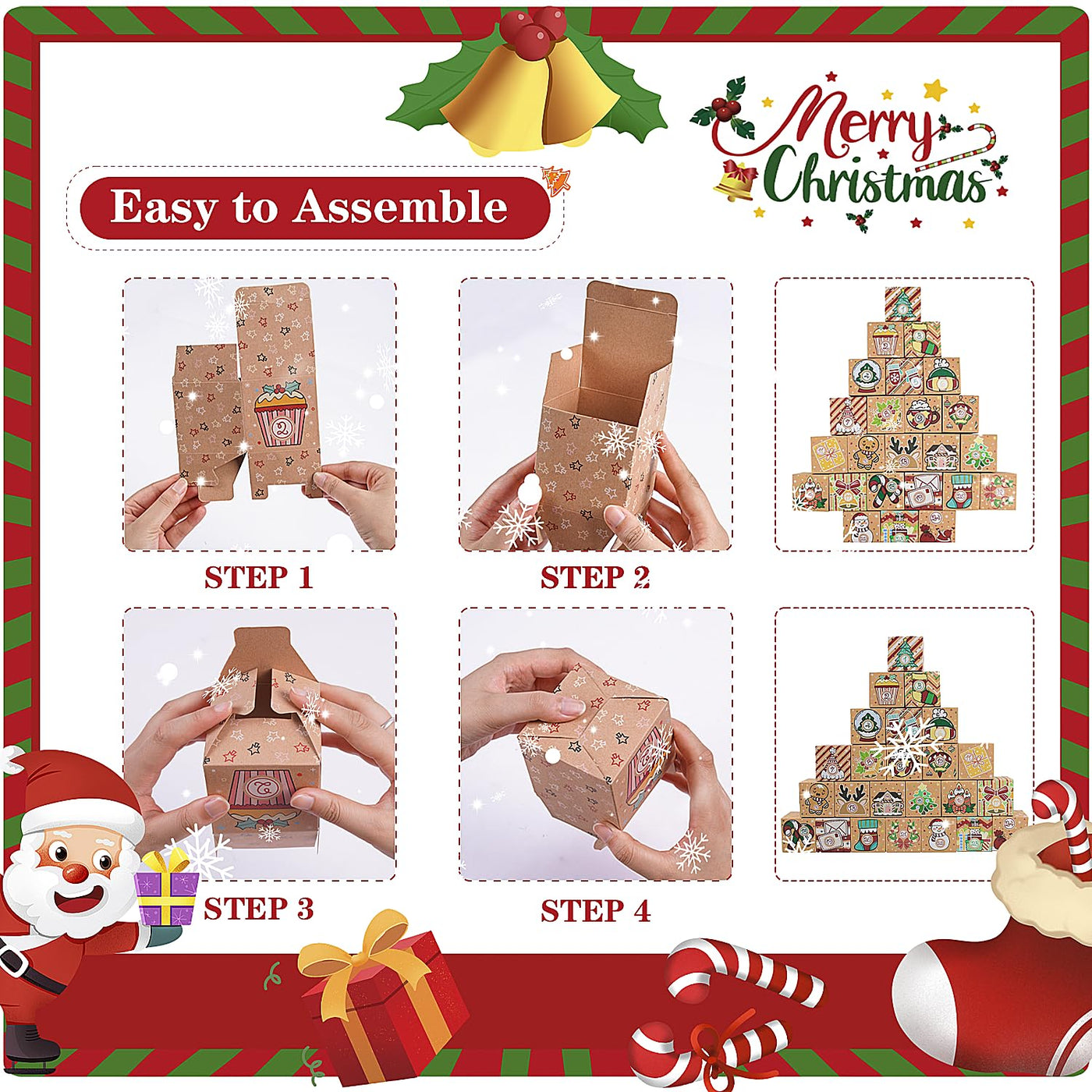 Design:24Pcs Christmas Pattern Advent Calendar Boxes. Perfect Size: The Size Of Box Is 7.5 X 7.5X 7.5 Cm, Perfect For Gifts Such As Chocolate, Candy, Coins, Trinkets And Dolls.&Nbsp; Simple And Easy Way Of Make Different Surprises Every Day For Your Child Sturdy Advent Calendar Boxes: Made Of Sturdy Kraft Paper, Colorful And Nice To Come Flat Pack Easy To Assemble, Just Attach Stickers To Form A Christmas Countdown Calendar.