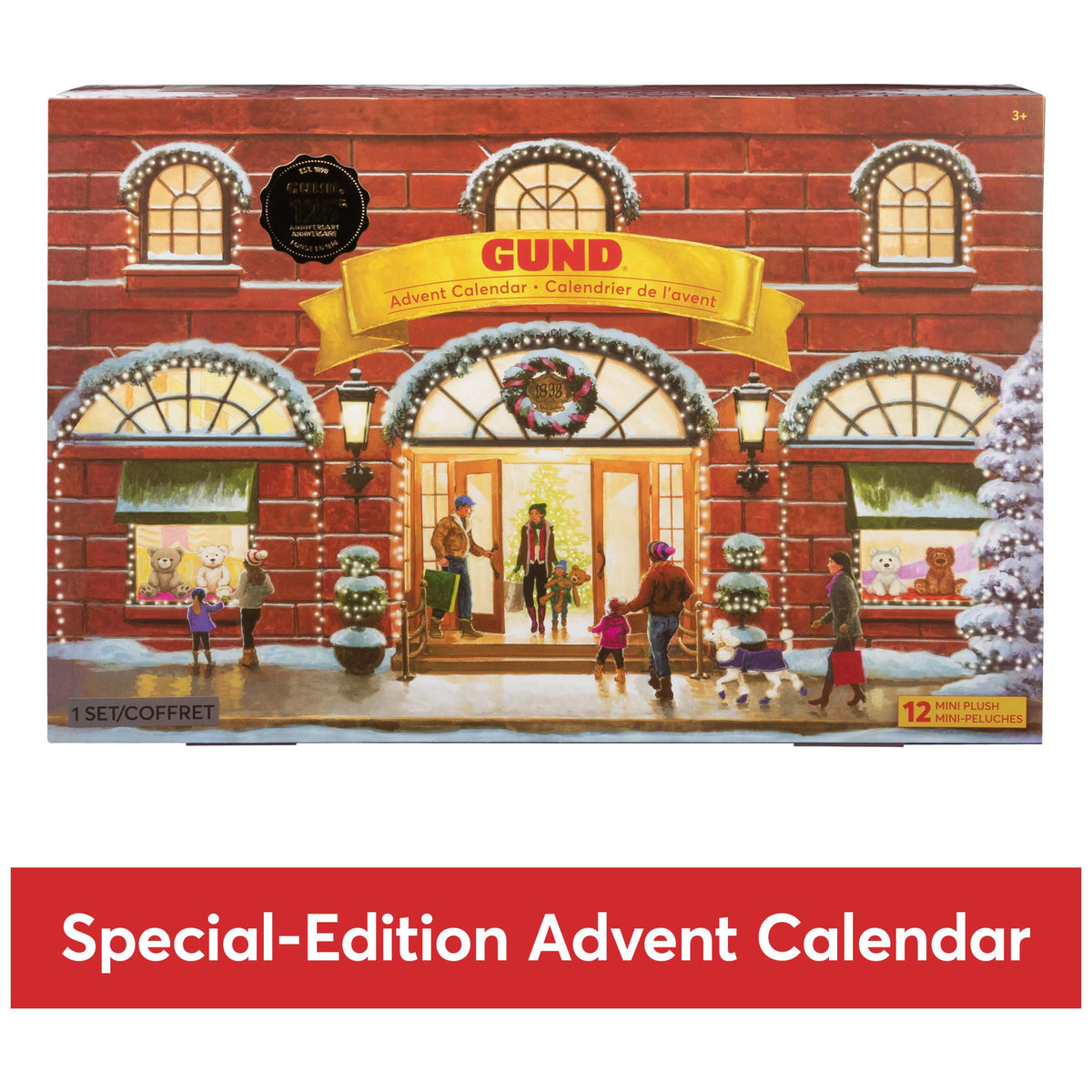 Celebrate The Holiday Season With Lovable New Plush Friends! From Seasoned Plush Collectors To Toddlers And Babies Celebrating Their First Christmas, This Beautiful Advent Calendar Is The Perfect Way To Surprise Anyone On Your List With Cuddles And Timeless Plush Friends. Reaching 12 Inches (Width) By 18 Inches (Length), This Large, Gift-Ready Box Is Decorated As A Red Brick Building With A Wintry Hand-Painted Shopping Scene And Features Everything You Need To Count Down To The Holidays With A Surprise Each Day! Each Window In This Special Advent Calendar Hides A Cozy Classic 4-Inch Plush, From Iconic Teddy Bears To Playful Puppies And More. Explore The Toy Store Inside To Reveal A Cuddly Gund Friend Behind Each Present! All Feature Incredible Detail And Remain True To Their Classic Larger Gund Counterparts. Whatever Generation Or Kind Of Collector Or Cuddler You Are, Theres Something For Everyone, With 12 Beautifully Crafted Miniature Pals To Warm The Heart. All Of The Boxs Hand-Designed Artwork And Illustrations Give This Calendar A Personal, Memorable Touch To Make The Countdown Even More Special. We Even Include A Gund Stamp That Assures Youre Only Getting Our Premium Quality, Time-Tested Plush. Each Plush Toy In The Calendar Is Crafted Of Soft, Surface-Washable Materials For Easy Cleaning. Appropriate For Ages 3 And Up. Dimensions: 17 7/8 (L) X 11 (W) X 3 (D)
