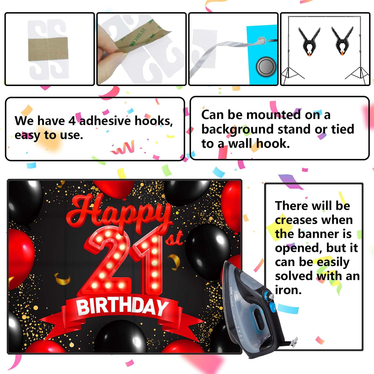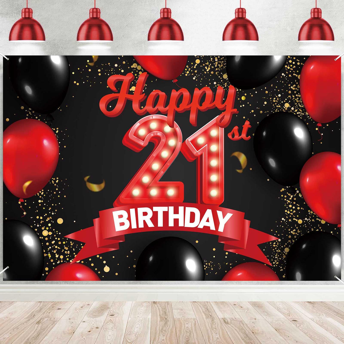 Happy 21St Birthday Red And Black Banner Backdrop Decorations Balloons Theme Decor For Girls Women Princess 21 Years Old Birthda