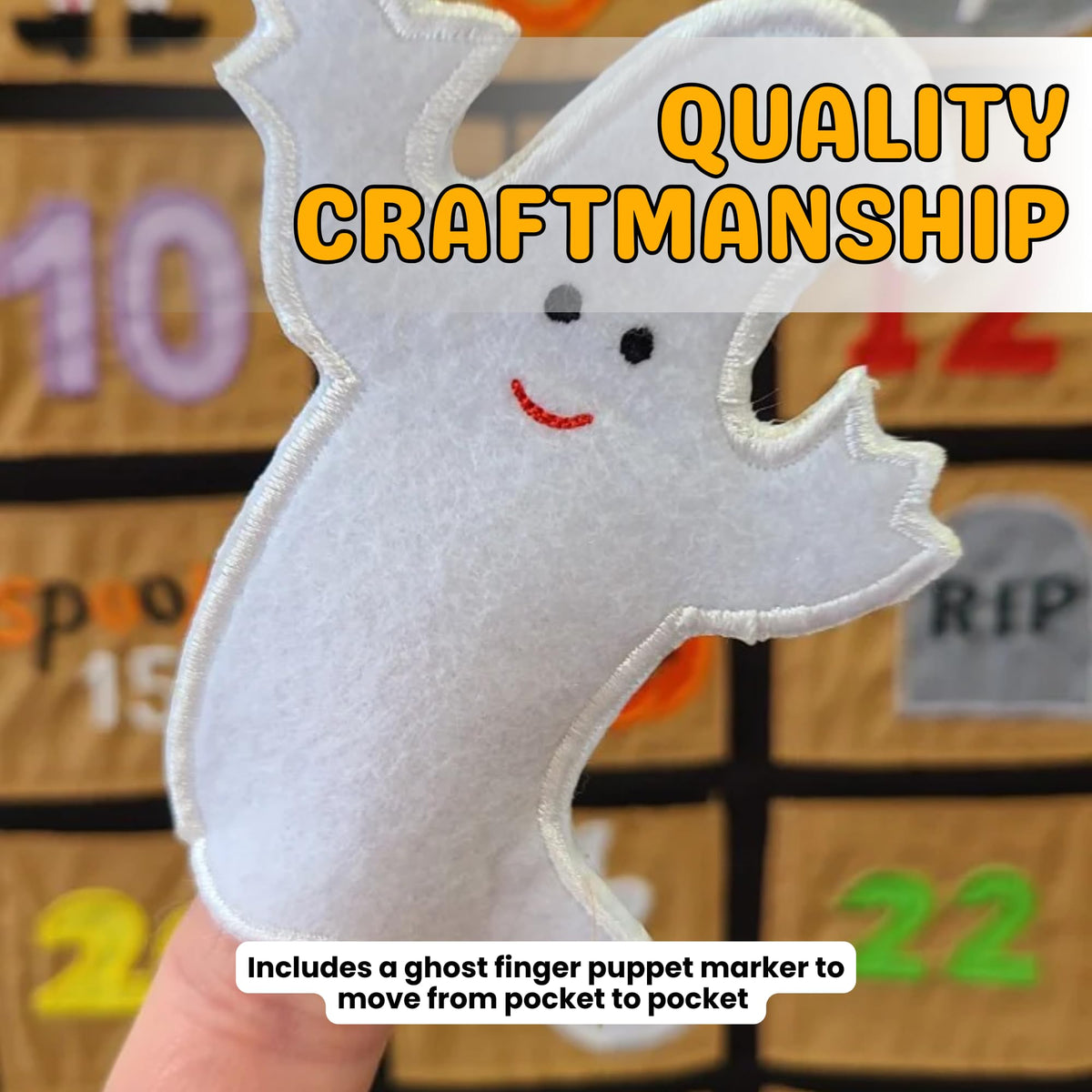 Q: How does the interactive feature of the calendar enhance the Halloween experience?A: The interactive design, featuring a detachable friendly ghost finger puppet, allows children to engage in storytelling and role-playing as they count down the days to Halloween. This fosters cognitive development and social interaction, making the countdown both fun and educational.