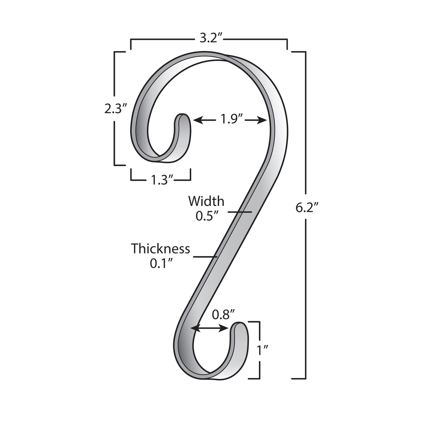 Q: What are the dimensions of each Stocking Scroll?A: Each Stocking Scroll measures 4.4 inches long, 0.6 inches wide, and 6.0 inches high, making them compact yet sturdy enough to hold your Christmas stockings securely.