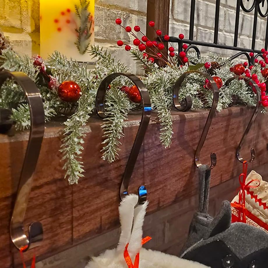 Q: Can I use the Haute Decor Stocking Scrolls for different types of mantels?A: Yes, the Haute Decor Stocking Scrolls are designed to work on nearly any type of mantel or shelf, regardless of thickness or shape, making them versatile for all your holiday decorating needs.