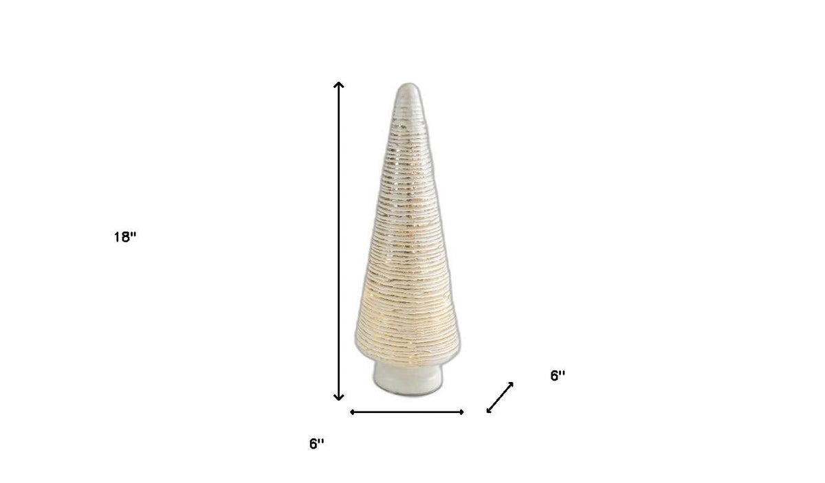 HomeRoots 18' White and Gold Glass Christmas Tree Sculpture with LED Light
