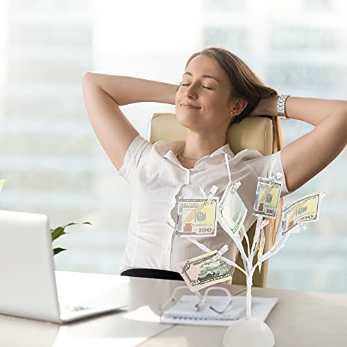 Honoson Christmas Led Tabletop Branches Decor Money Tree Gift Holder Night Light Fairy Tree Holder With 32 Clear Clips For Displ