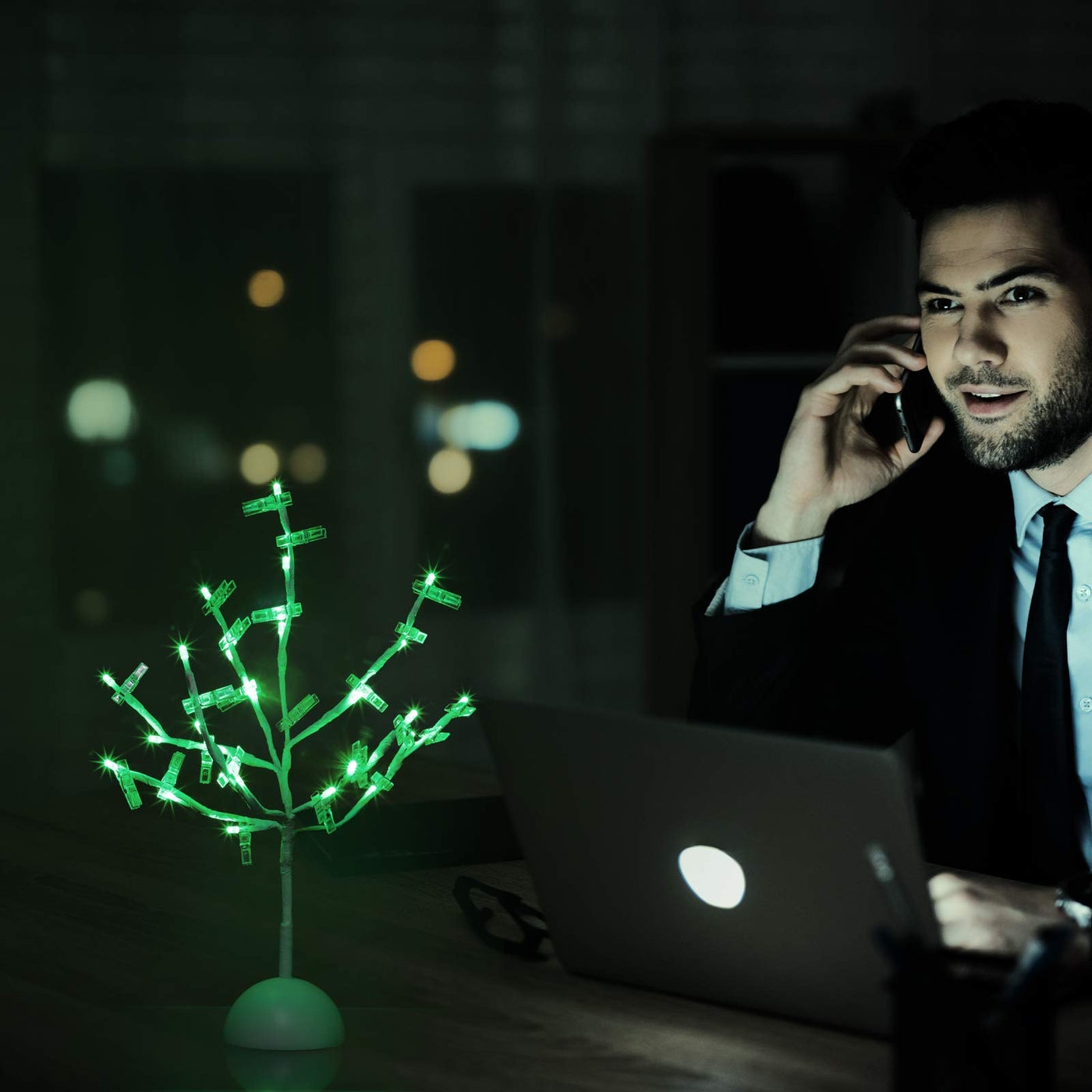 Q: What can I display using the included clips?A: The package includes 32 transparent clips that allow you to display photos, greeting cards, colored paper, and even banknotes, adding a charming touch to the LED tree light.