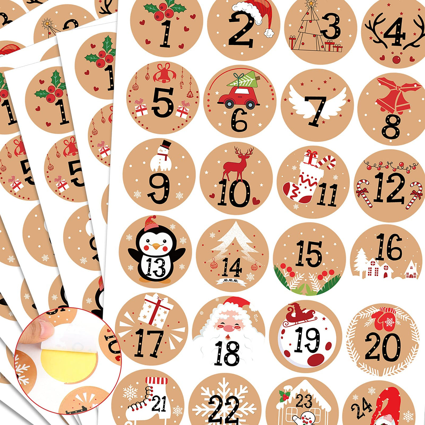 Q: How can I use these stickers for my advent calendar?A: You can use these stickers to mark each day leading up to Christmas by placing them on a DIY advent calendar, gift boxes, or greeting cards, adding a fun and festive touch to your countdown.