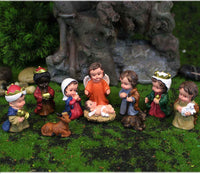 Q: What is included in the IRCOR Mini Nativity Set?A: The IRCOR Mini Nativity Set includes a total of 10 beautifully detailed and colorful figures, featuring Baby Jesus, Mary, Joseph, a King, Wise Men, an angel, a shepherd, a donkey, and a cattle.