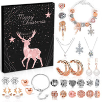 Jewelry Advent Calendar 2023 Teen Girls Women, Rose Gold And Silver Charm Bracelet Countdown Calendar And Fashion Jewerly Earrin