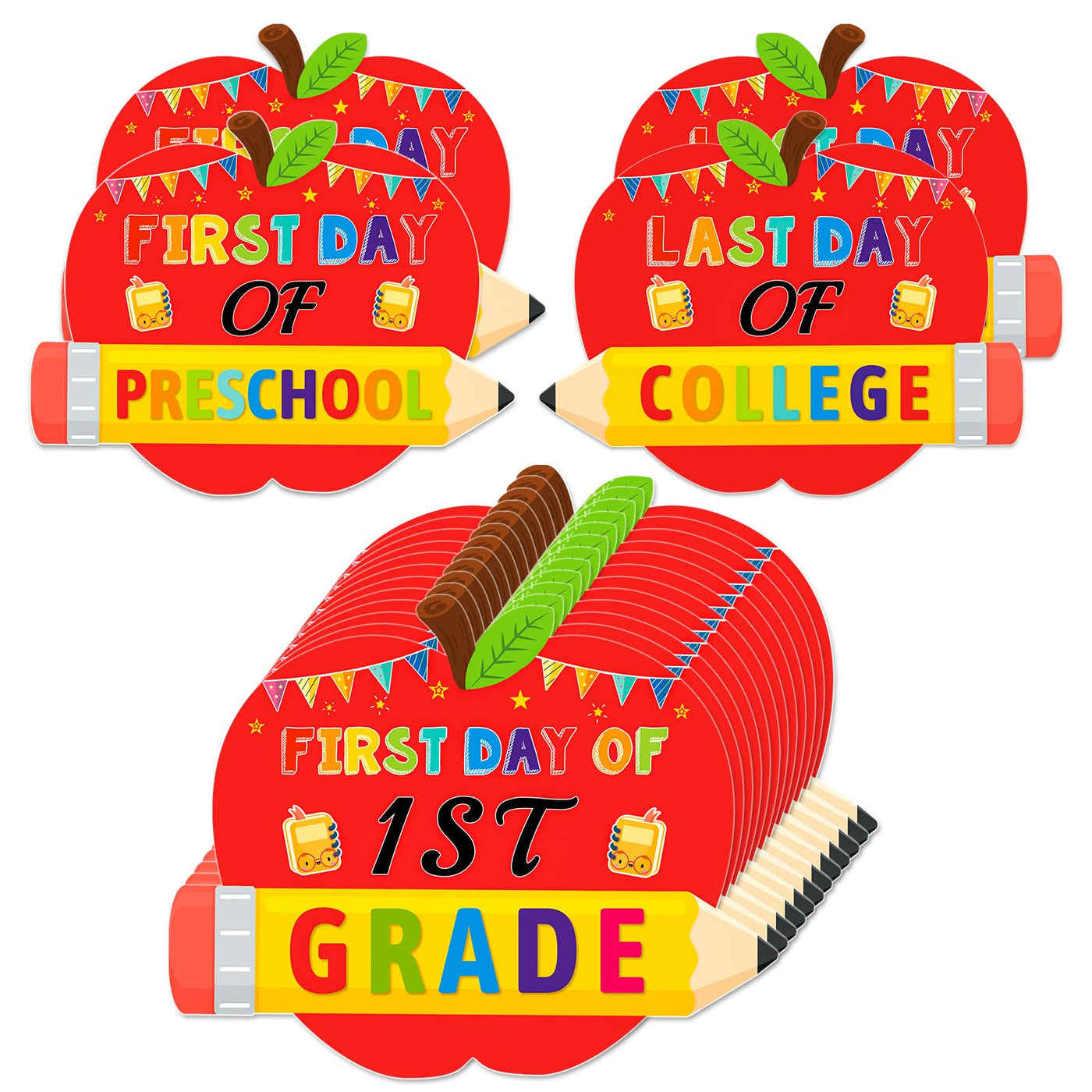 Pack Of 16: The First Day Of School Signs Contains 1Pcs Welcome Sign And 15 Grades Signs From Preschool, Kindergarten, 1St-12Th Grade And College.Material: First Day And Last Day Of School Signs Are Made Of High Quality Cardstock Paper, With Clear Printing, Waterproof And Reusable. Size: The Back To School Photo Props Signs Measure 10' X 8', Suitable For Holding In Hands As Photo Props.