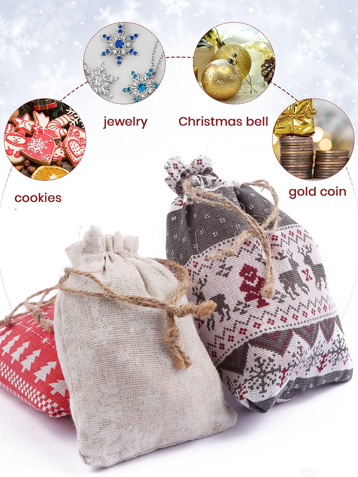 Q: How can I use the advent calendar bags for Christmas celebrations?A: These advent calendar bags can be filled with small gifts, treats, or toys for each day leading up to Christmas. Simply place a surprise in each bag, attach the corresponding number tag, and hang them on your Christmas tree, fireplace, or wall to create a fun and engaging countdown experience.