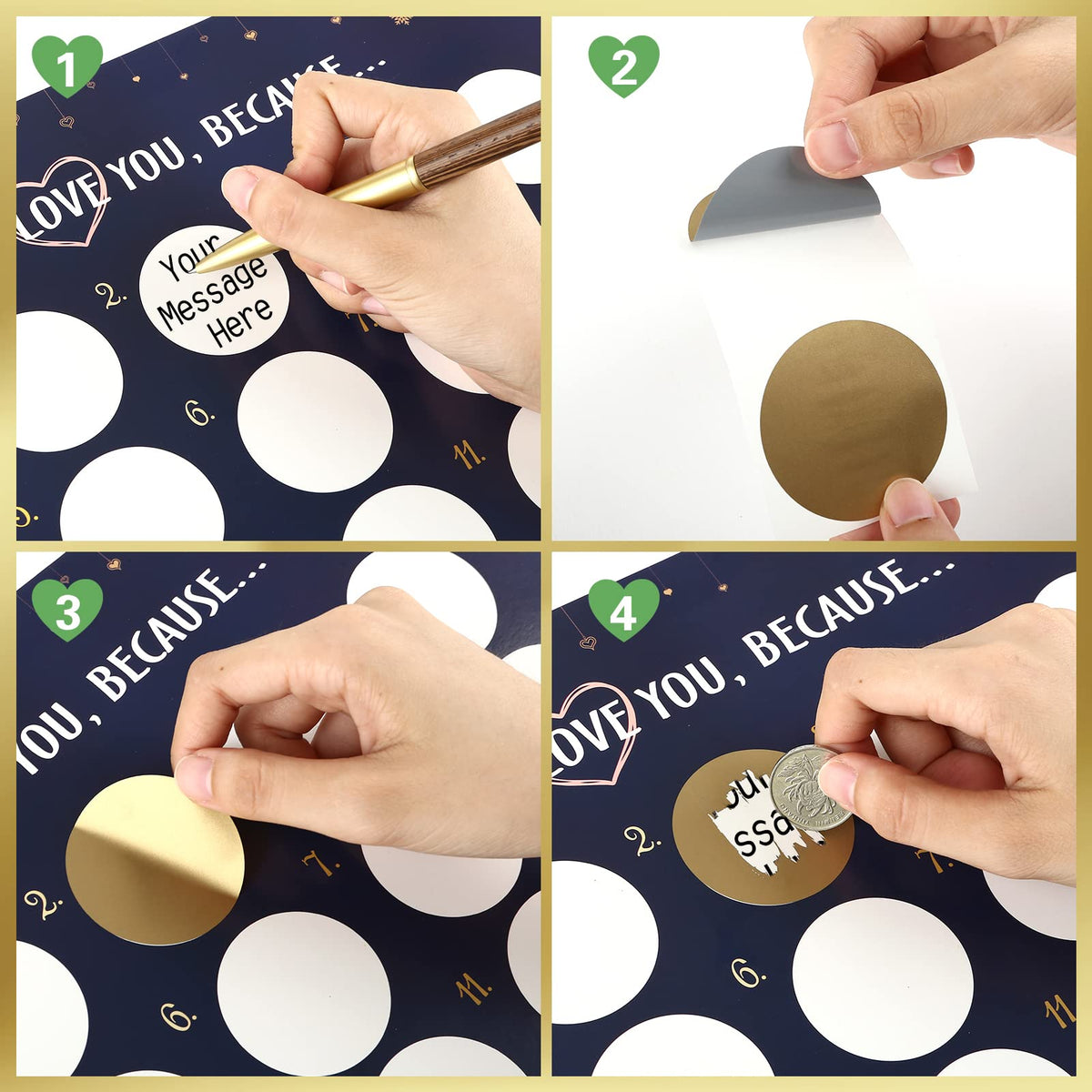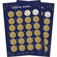 Q: How can I use the scratch-off poster to create my Advent calendar?A: You can personalize the scratch-off poster by writing down 24 reasons for loving someone, one for each day leading up to Christmas, and covering them with the provided scratch-off stickers.